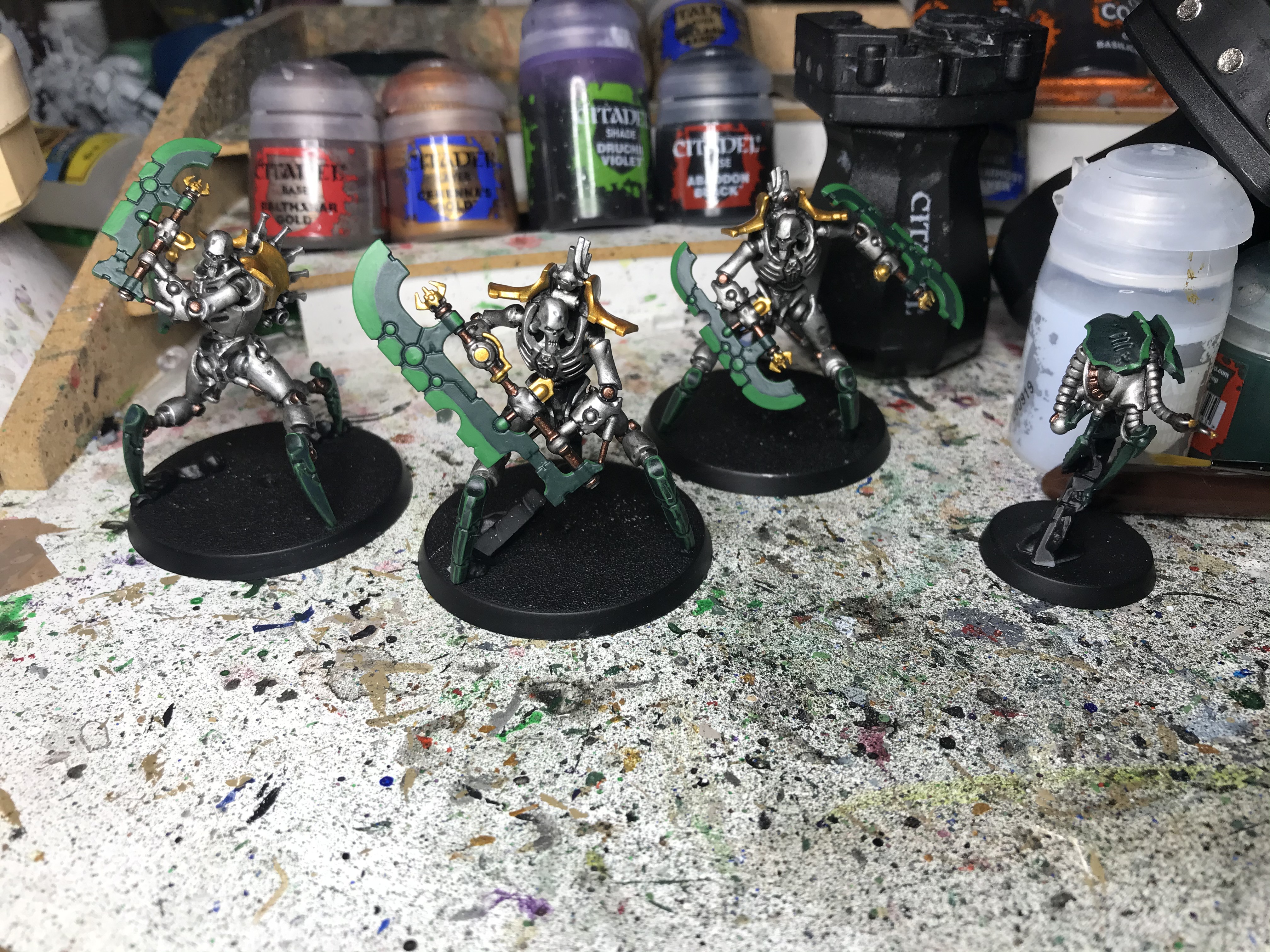 Destroyers. Credit: WingsFor Indomitus, I decided I wanted to start out with the Skorpekh Destroyers, as they're an exciting new unit and I thought they'd provide a decent canvas to work on. The Skorpekh Lord is also the unit I'm most excited by on a tactical level, so warming up on the Destroyers seemed like a good plan!