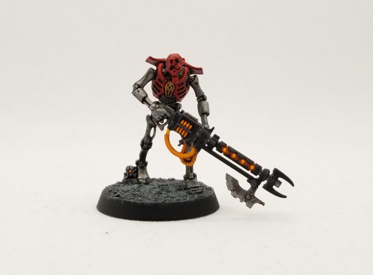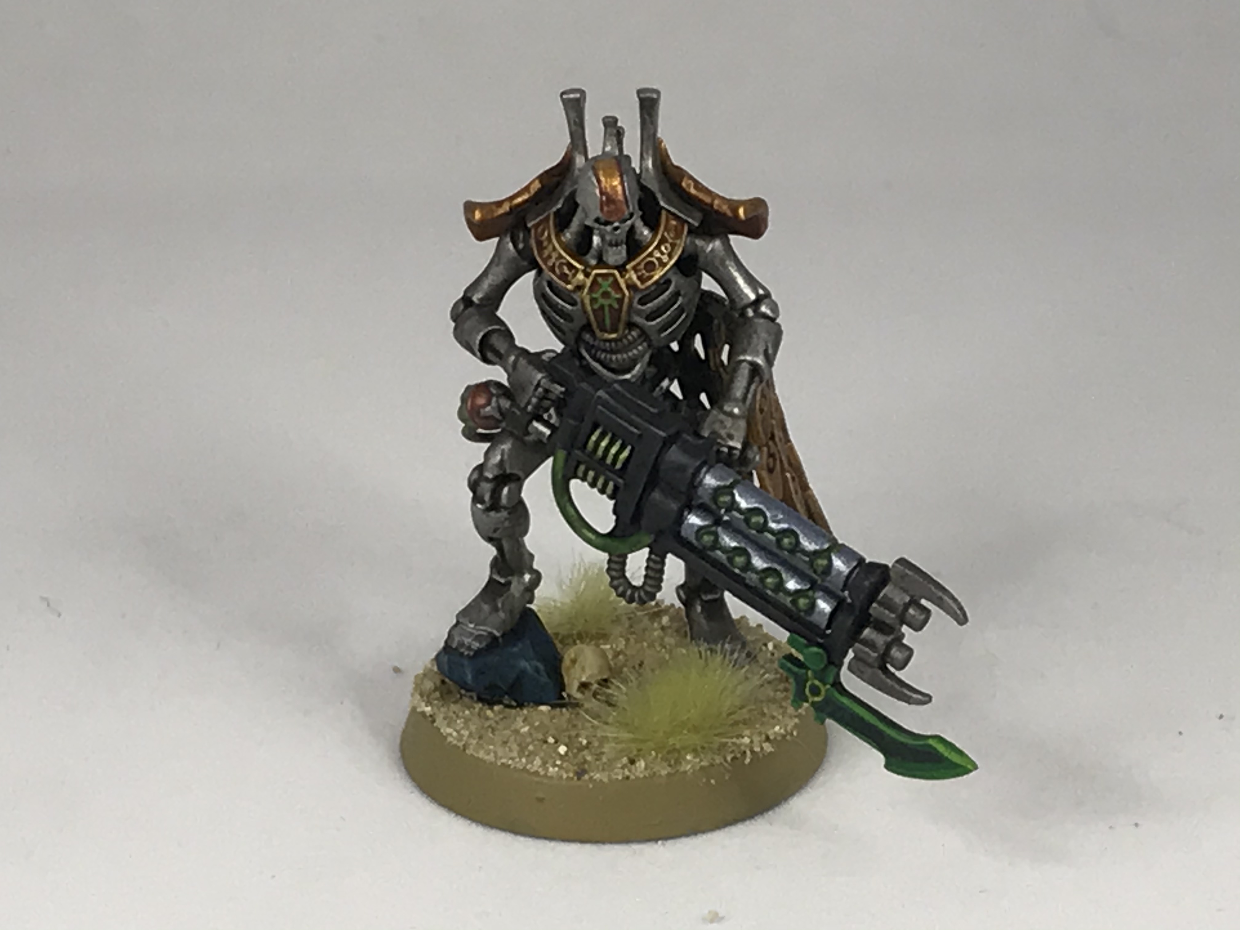 Credit: Robert "TheChirurgeon" JonesThe other major difference between my characters and my rank-and-file jerks is that my character Necrons have orange hyperphase weapons. These took a bit of trial-and-error to figure out before I got a process for doing them that wasn't particularly hateful.
