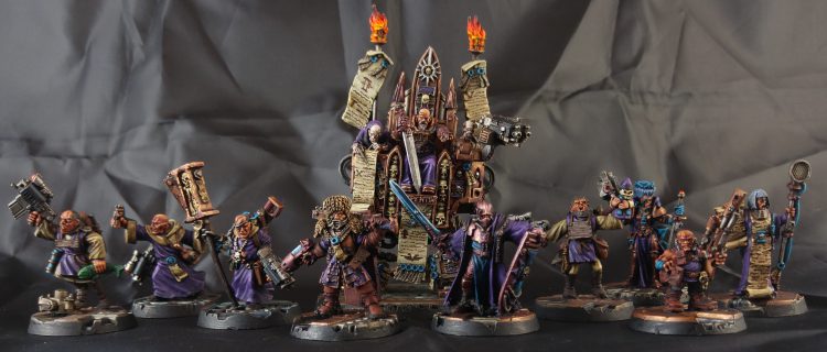 I painted Karamazov and his band of merry men around the release of Shadow Wars: Armageddon. This was off a wave of nostalgia: This was before the release of the revised Necromunda or Kill Team and GW’s first skirmish game in awhile. The idea of a fiery Inquisitor marching around on a throne with fanatics in tow was too good to resist. Like many GW games at the time, the rules were broken as hell, so I gave everyone Storm Bolters (I know… trust me I don’t do that, anymore).