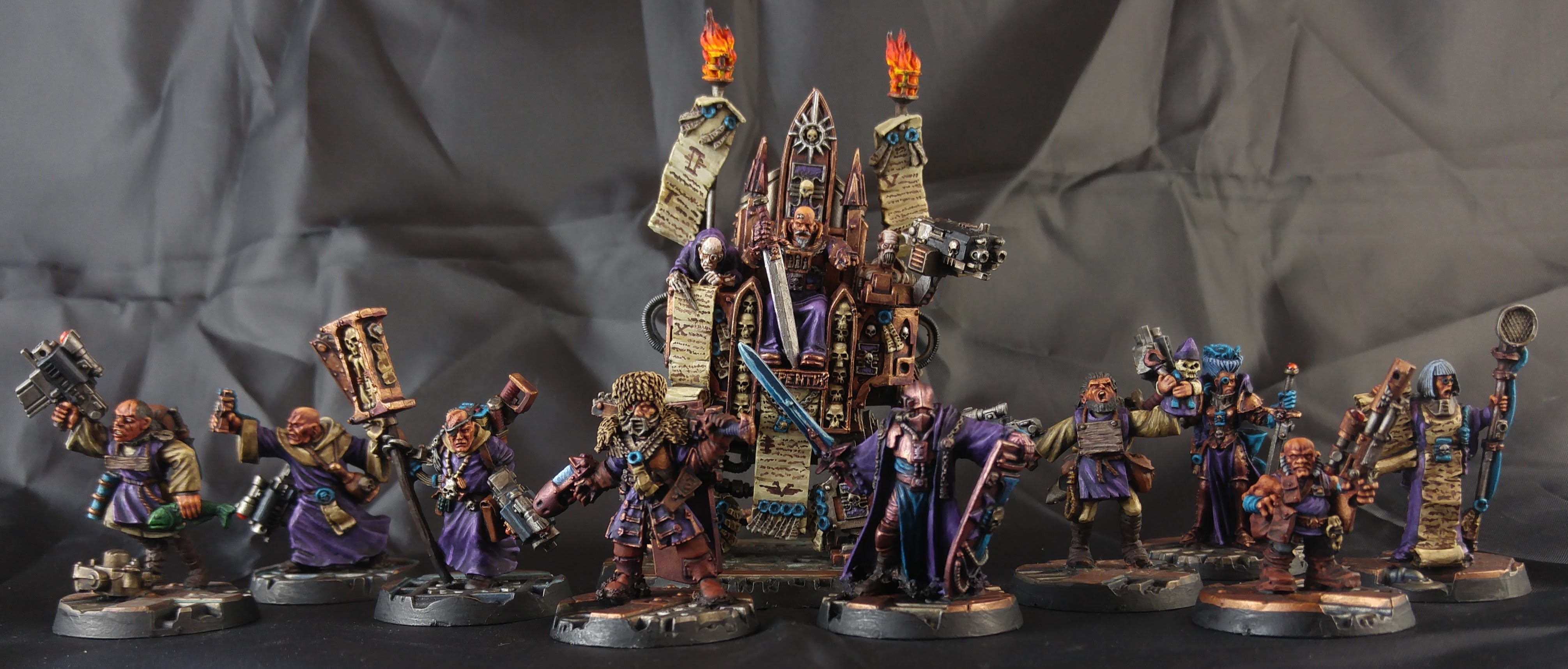 Inquisitor Karamazov and his warband. Credit: Crab-Stuffed MushroomsGiven that, the first principle should be obvious. Each inquisitor is a Singular Individual. Occasionally an inquisitor's dress will mirror the force they accompany, but even then, that uniformity should be an expression of their personality. More often, an inquisitor's regalia will be unique to them.