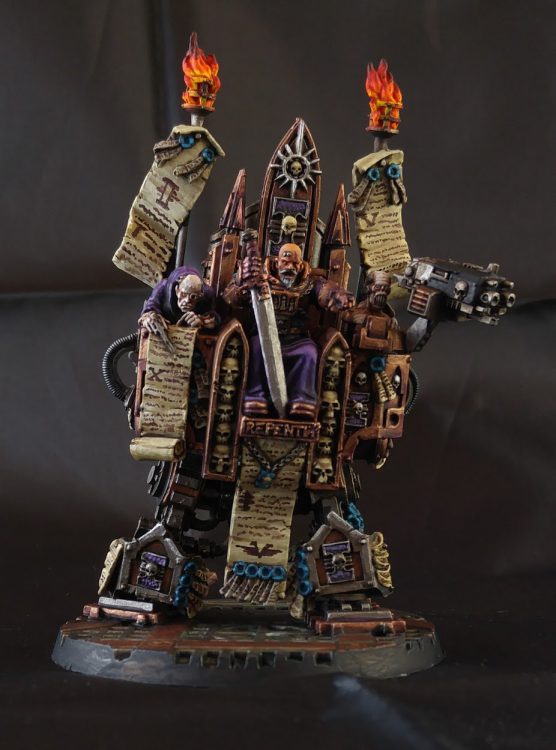 There weren’t a lot of Inquisitors painted in purple at the time and I was tired of painting black and red (popular colors for Inquisitors at the time). The image of a golden Throne of Judgment also seemed appealing.