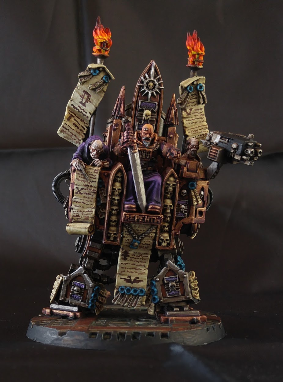 This is one of the ancient inquisition sculpts that came out with the original witch hunters codex, and probably one of my favorite models GW has ever produced. It's out of production, but I managed to through made to order. It's a touch small by modern standards, and there's a few spots that are slightly iffy, but like many of that batch of models, it exudes character. At least to me, the direction to go with this model was pretty obvious from the start.