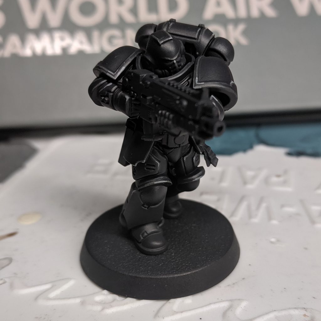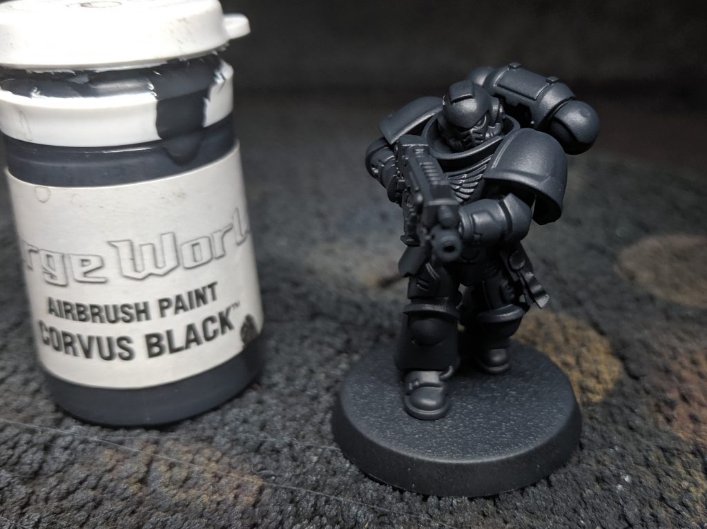 Corvus Black, airbrushed on to leave a little bit of pure black in the recesses