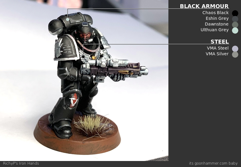 I've done a number of black armor models up to this point and the process is pretty much the same across them, but that's no excuse not to paint an Iron Hands model just for this.