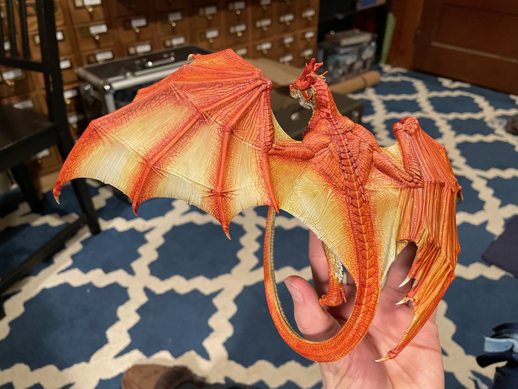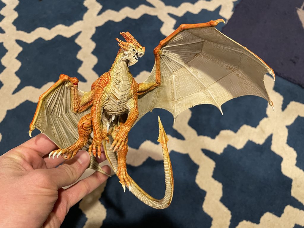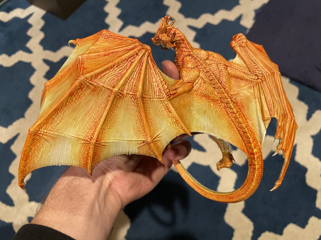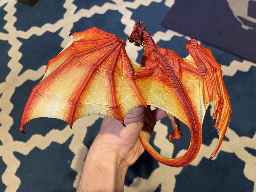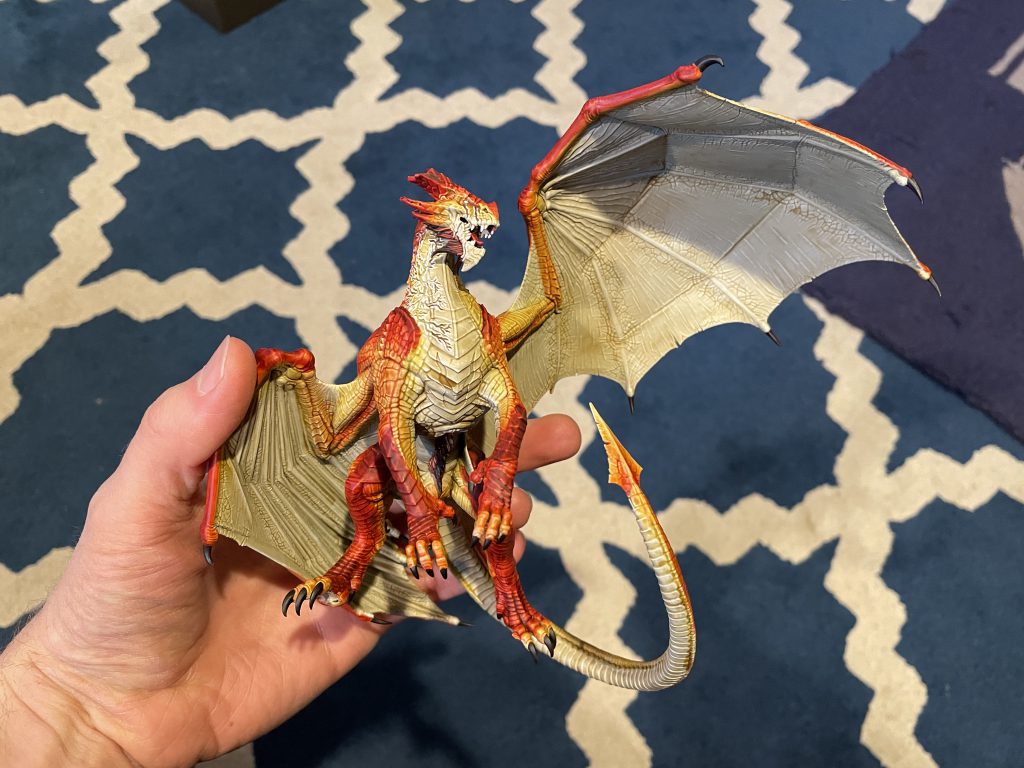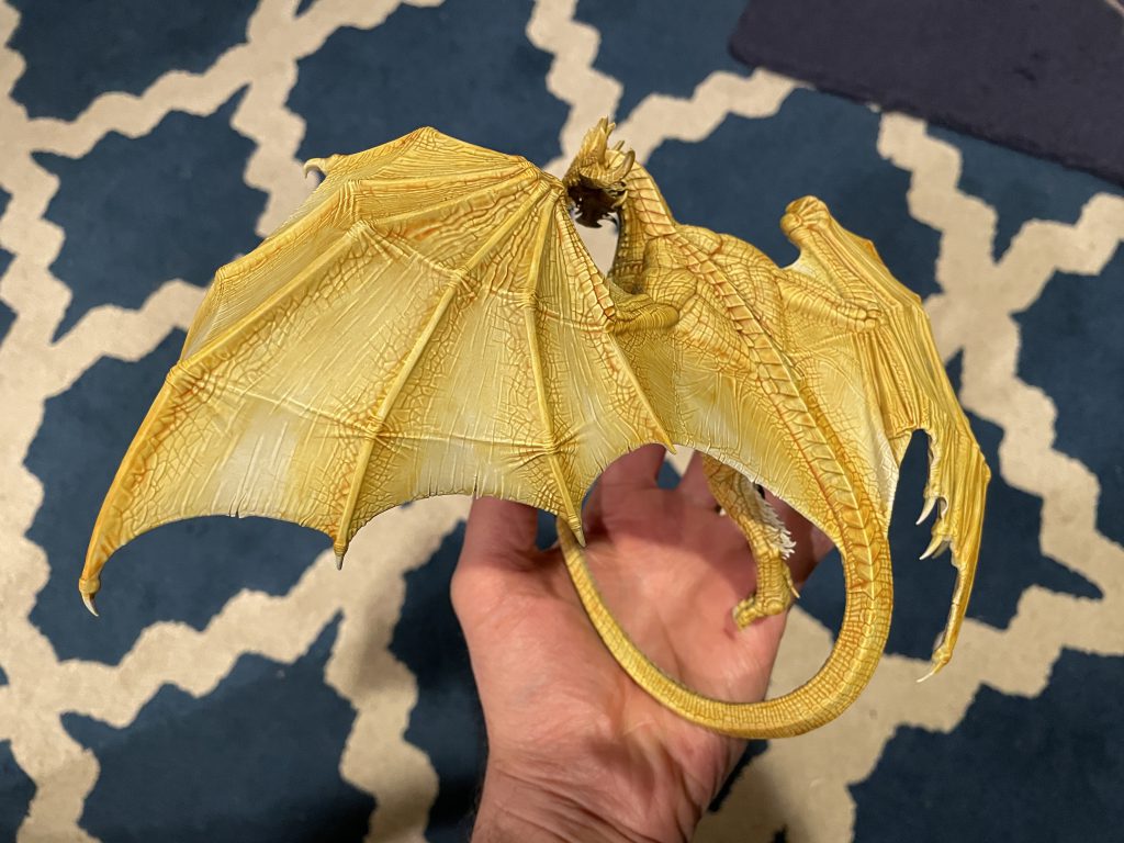Step 5 top. Credit: Dylan GouldStep 6 was a glaze of 60/40 Blood Angels Red and Contrast Medium on the scales and wing ribs of the outside of the wings, leaving a bit of the previous layer showing and wet blending to smooth them out.