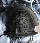 Below, you can find some reference steps for a slightly more complex shape, the pauldron from a Chaos Space Marine!