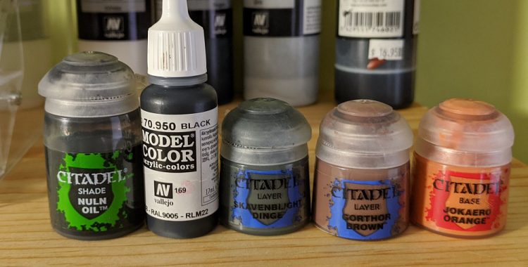 - Vallejo Model Color Black: This is just a very nice black that goes on matte, covers well, is fairly neutral and thus mixes well, and is all around excellent.