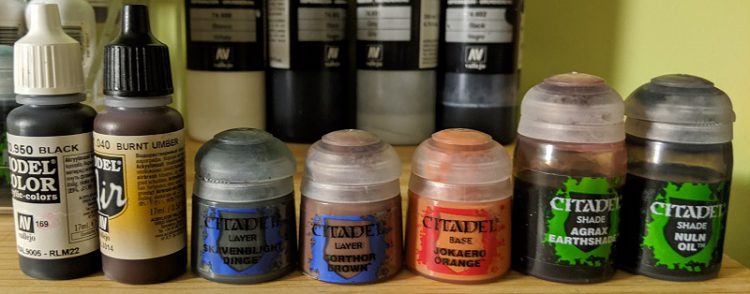 - Agrax Earthshade and Nuln Oil: Let's be honest, you own these already and may have spilled at least one of them all over your carpet. They're great washes for brown and black, and can be used to shift the color of the leather you're painting easily.
