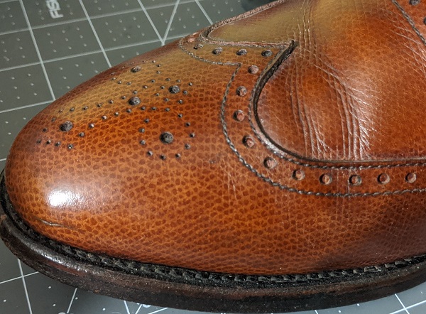 An example of pebble grain leather. Thanks for making me dig out dress shoes during quarantine, Rob. Good luck emulating this in 28mm scale.Credit: Evan "Felime" Siefring