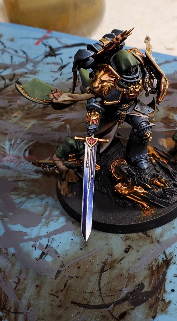 Lion El’Jonson. Credit: RockfishThings get a little "Paint the rest of the owl" after that as I did the remainder in one sitting and didn't take any more progress shots. The gold is layer highlighted in Liberator Gold then Stormhost Silver, which is also used on the metal, then I did the lenses in our normal technique using Khorne Red, Wazdakka Red, Wild Rider Red, Fire Dragon Bright, Flash Gitz Yellow, and white. I will warn you that there's no way around this head being a little awkward when it comes to painting the lenses just because of the modeled-on hood.