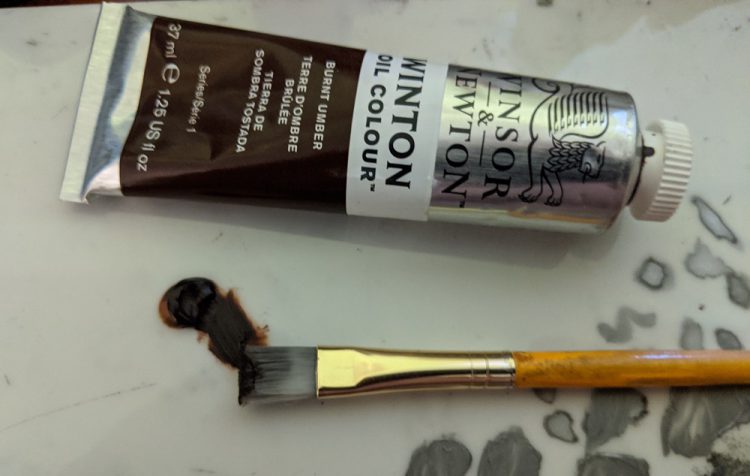 A quick note on oil paint. It takes days to weeks to dry fully. Wash your hands with soap and water after using it, unless you want to rub it off on the next white shirt you touch, where it will never ever come out.