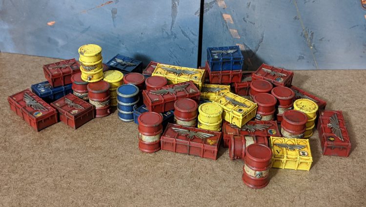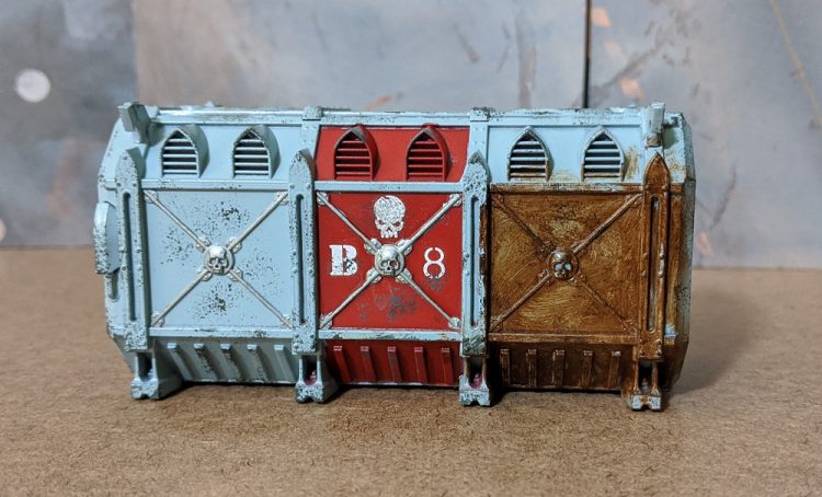 And there you go. This produces a great looking container with relatively little effort, and almost no skill required. None of the steps need to be done with much precision, as the oil paint and chipping will hide a multitude of sins. Now, go forth, and populate your battlefields with the greatest of all terrain features! I still have 11 more of these to paint.