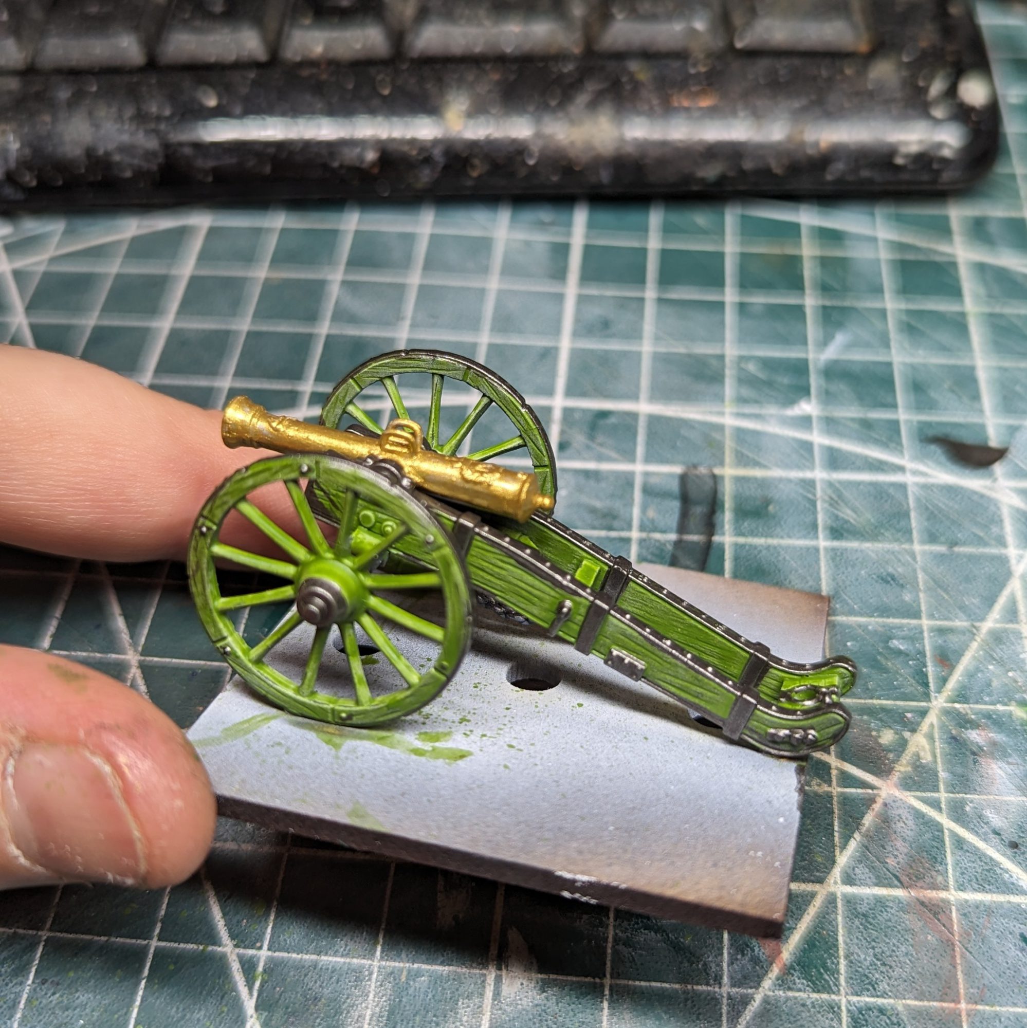 Zenithal works just as well on cannons as menBasecoats - contrasts make great basecoat paints for army projects. Use contrast (or another brand, I've also found Vallejo Xpress to be good) to basecoast in: