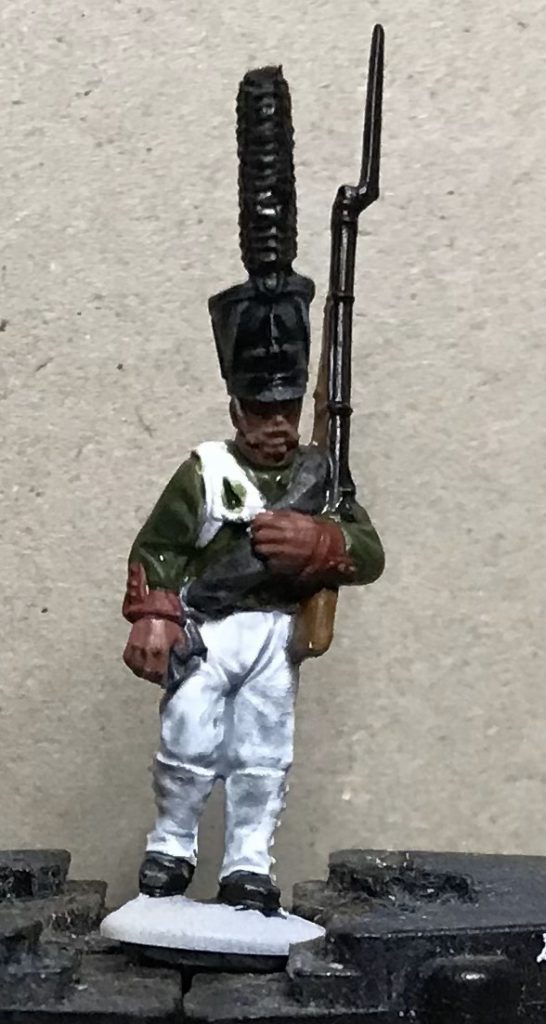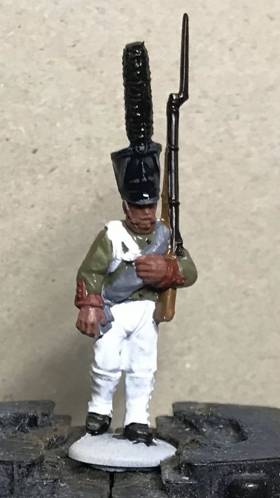 If I was batch painting, the trousers, jacket and greatcoat could be finished here, perfectly fine for a single model in a unit of 20-30.