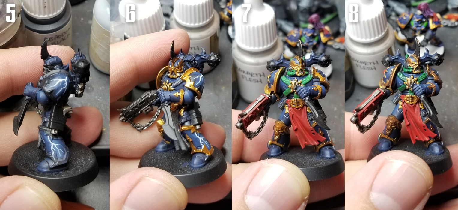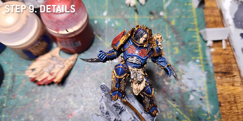 - How to paint notable elements of the Night Lords, such as lightning bolts on dark blue power armor and skull paint.