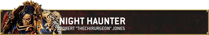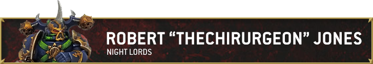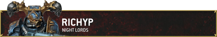 The Night Lords are the VIIIth legion of the First Founding, and one of the original nine Traitor Legions that turned to Chaos during the Horus Heresy, though their fall began well before Horus decided to rebel. The legion's Primarch, Konrad Curze, landed on the mining planet of Nostramo as a baby, where he was left to fend for himself. Nostramo was a world of perpetual twilight, whose moon continually blocked out the light from its nearest star. It was a dismal world run by criminal overlords and as the young Kurze aged he took it upon himself to end those injustices by killing said overlords like a kind of insane batman until the Emperor arrived.