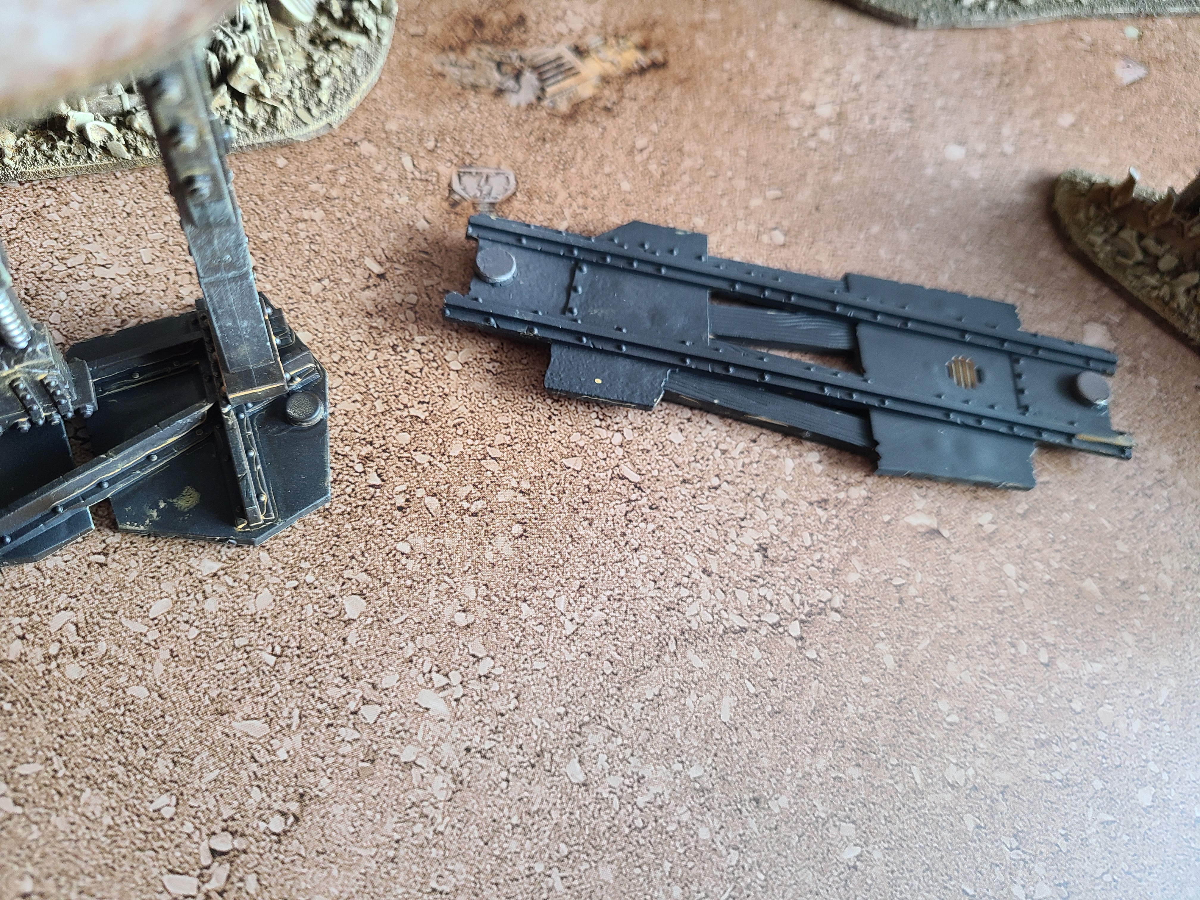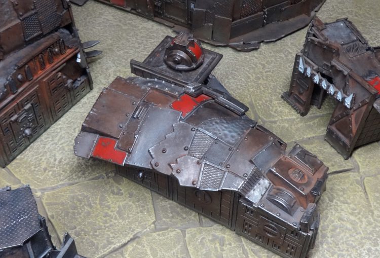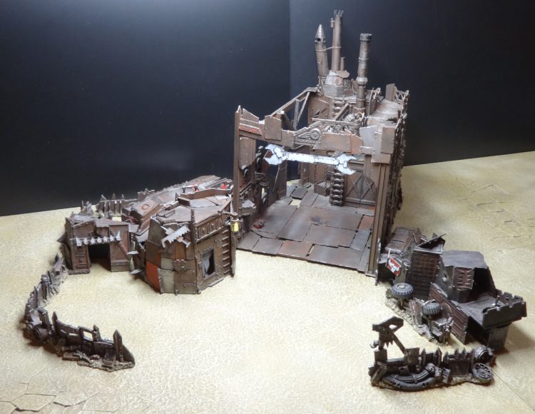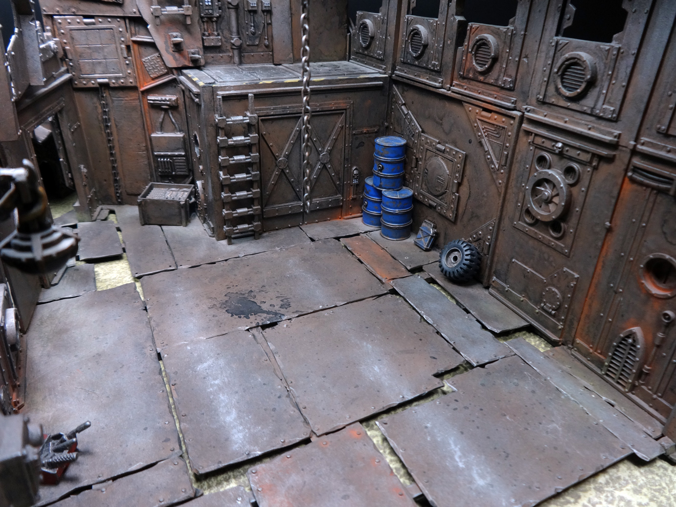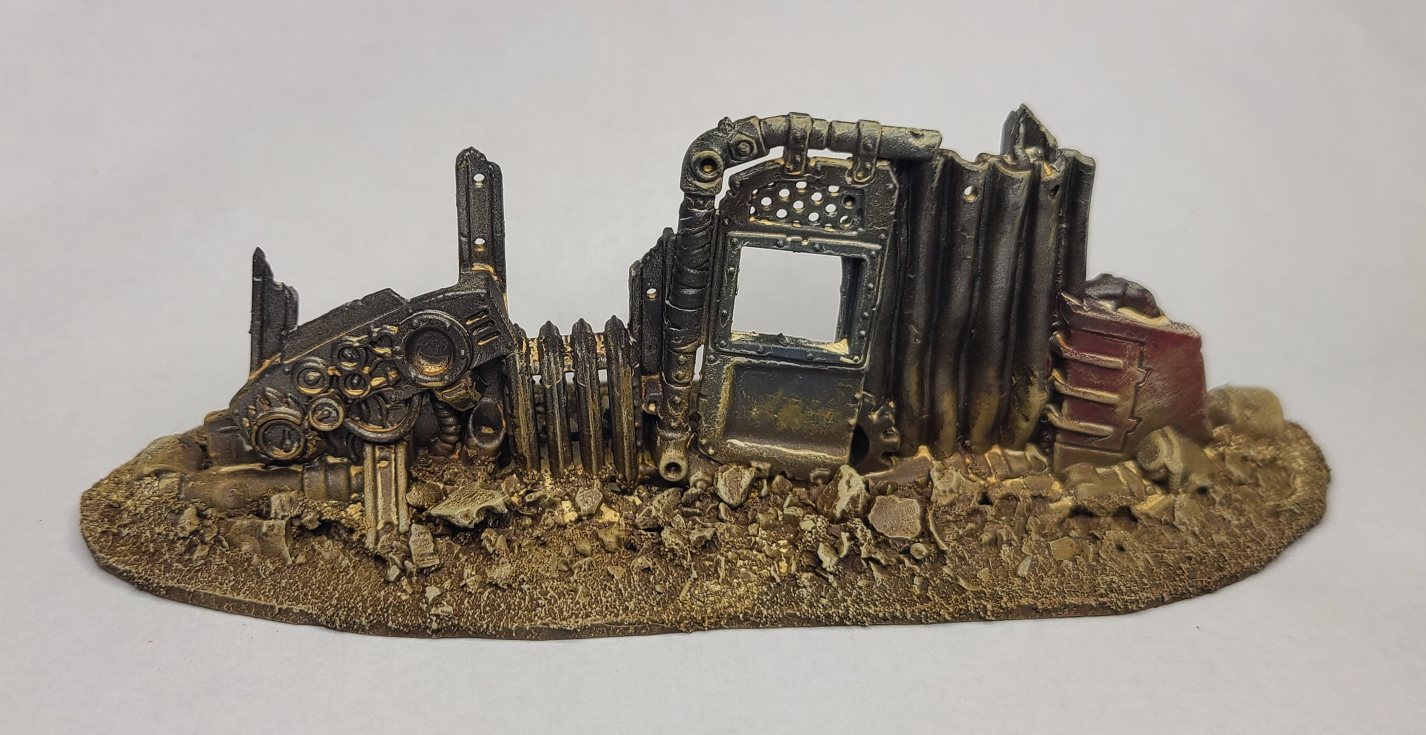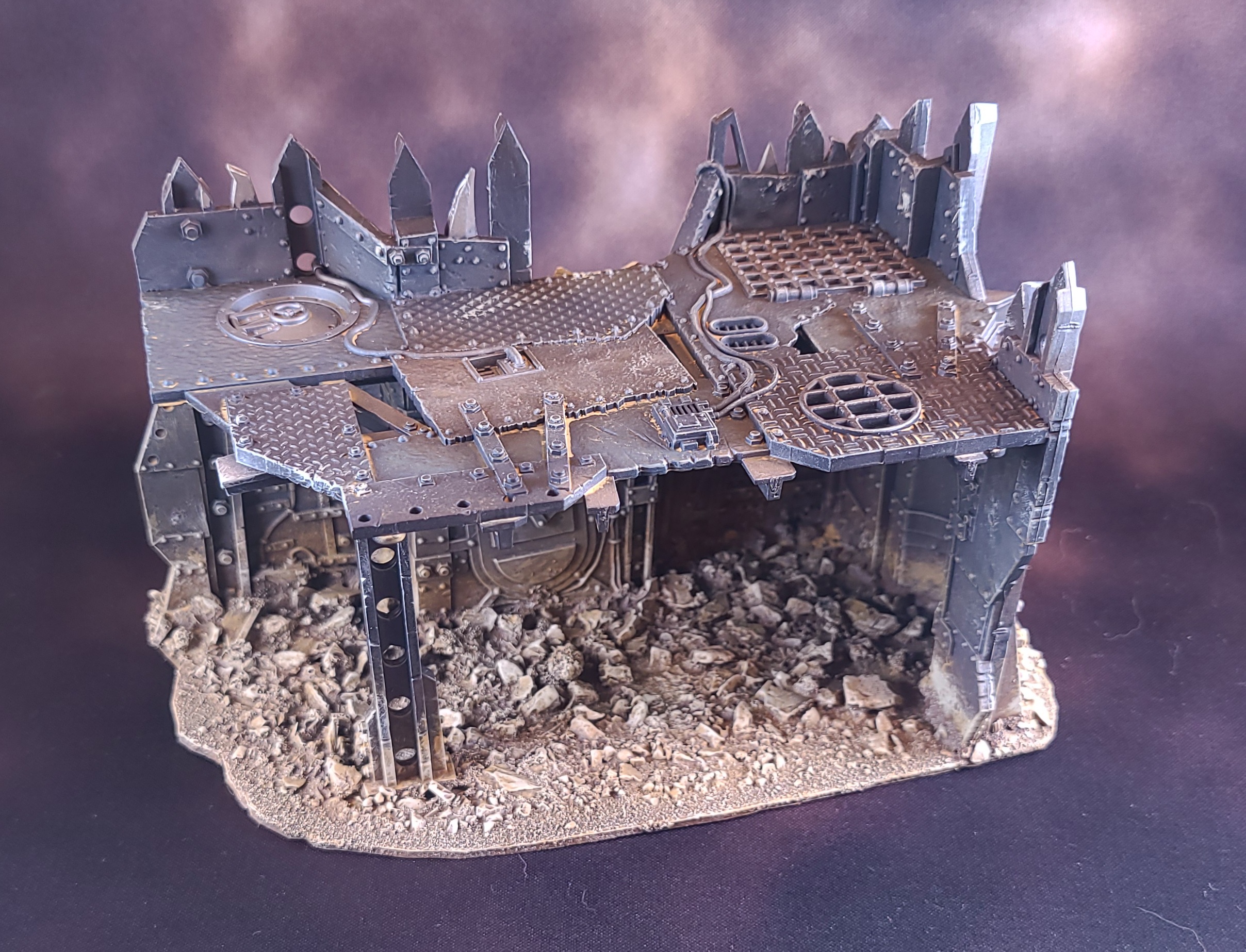 - I didn't want the terrain to be completely black, I painted random parts of the model (such as the girders, doors and armor plates) with Vallejo Burnt Iron.