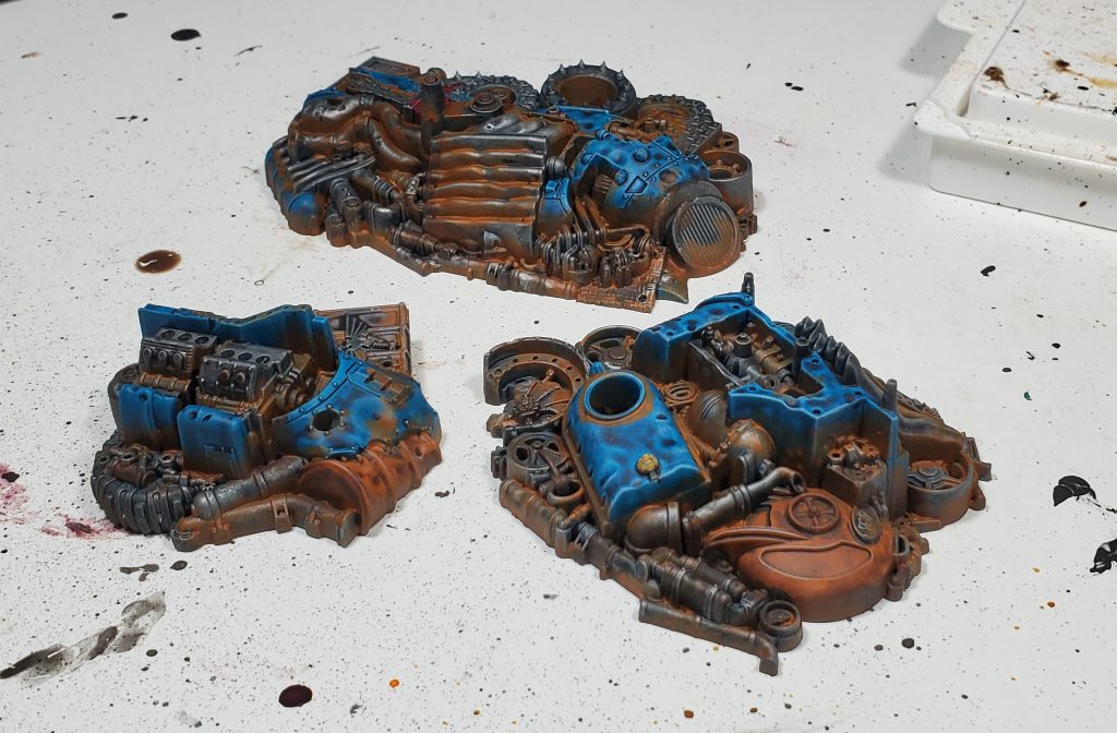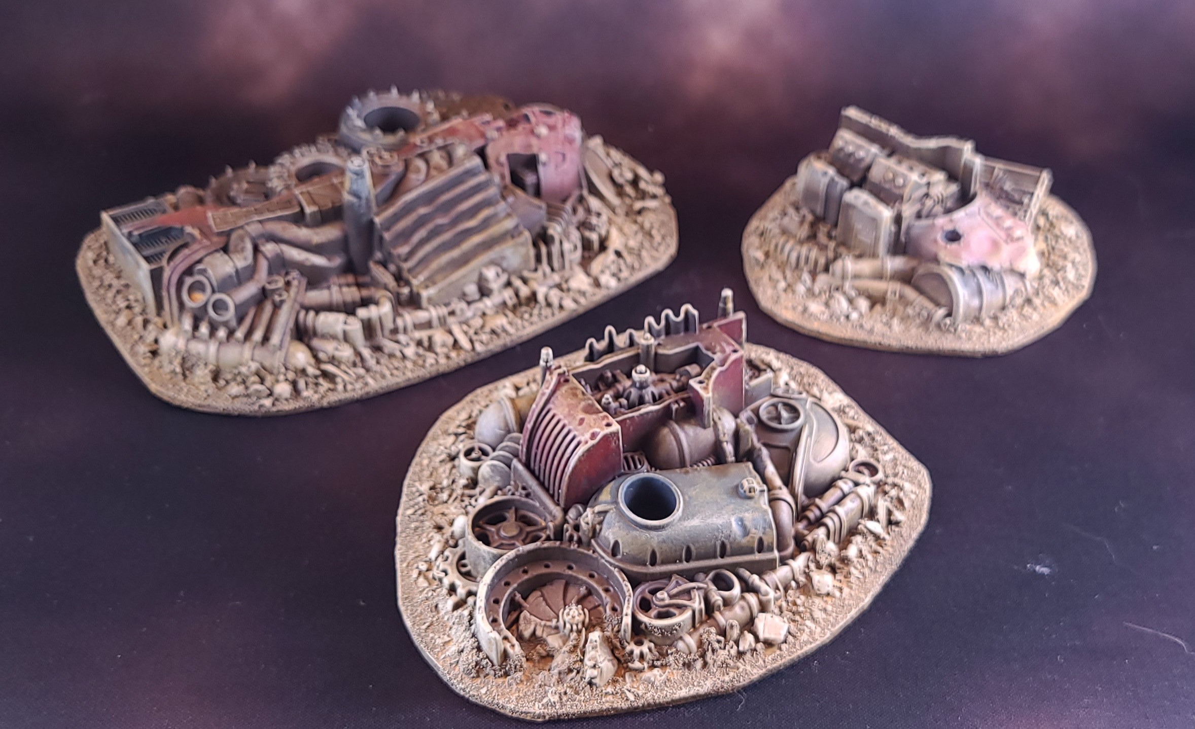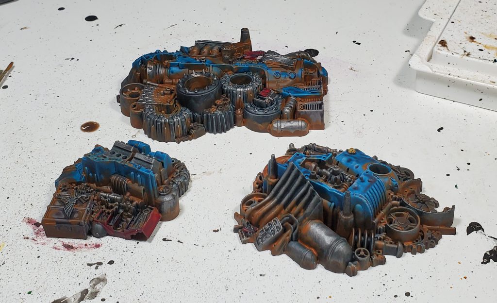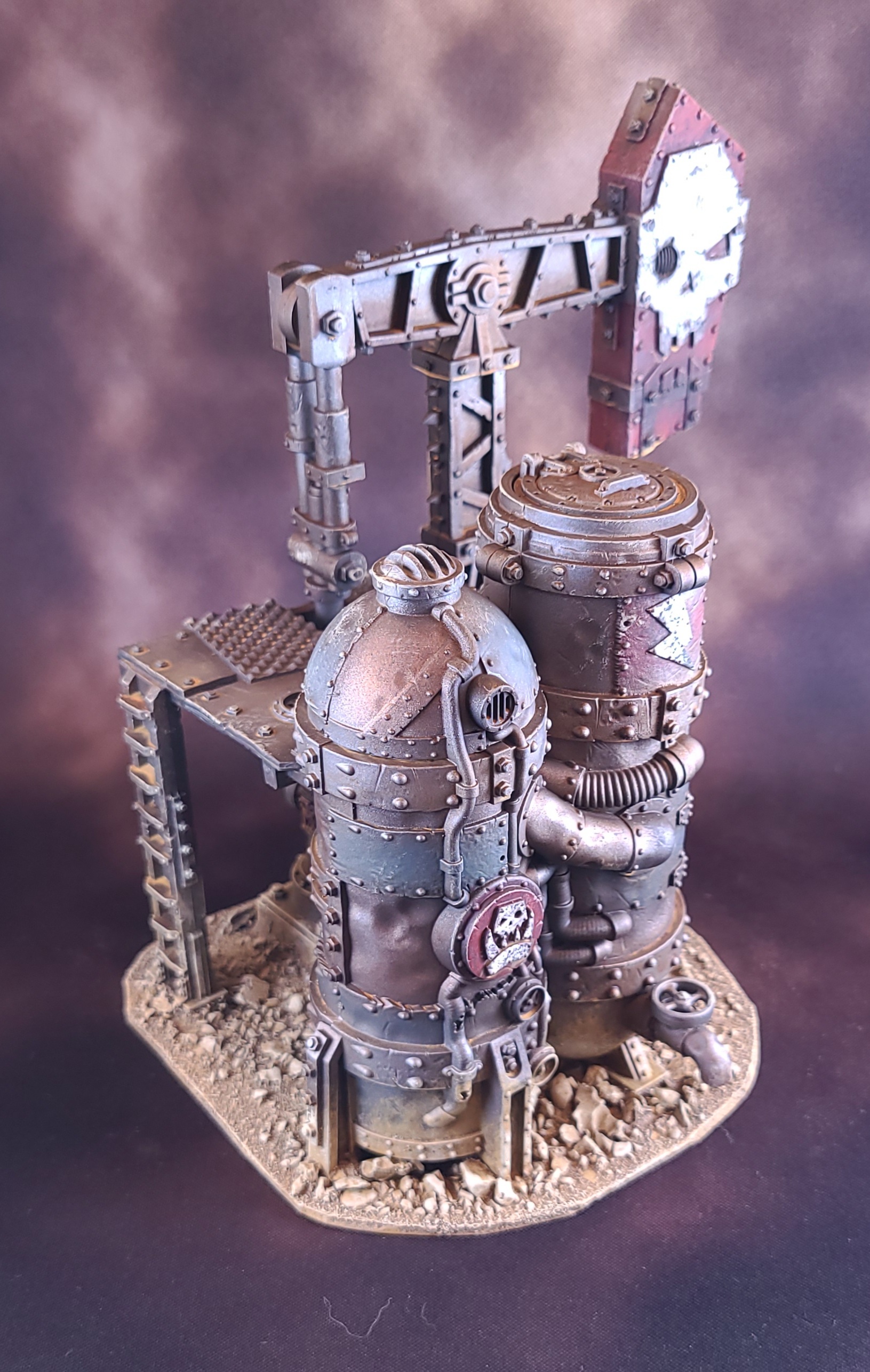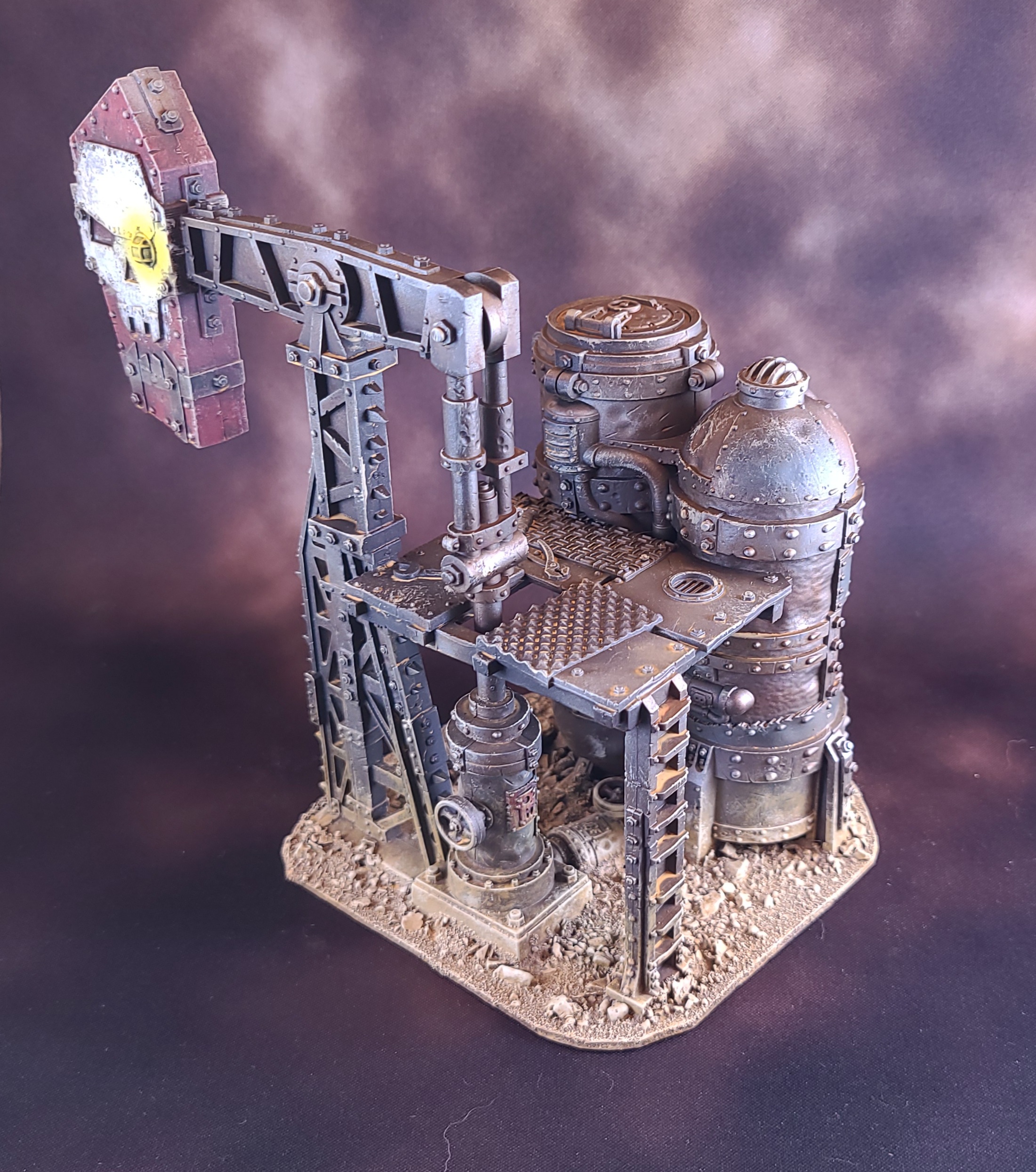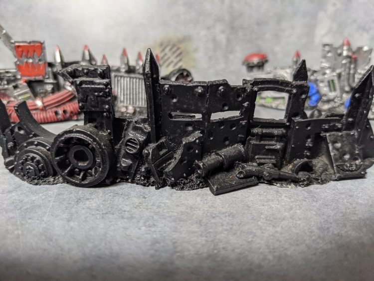 - I didn't want the terrain to be completely black, I painted random parts of the model (such as the girders, doors and armor plates) with Vallejo Burnt Iron.