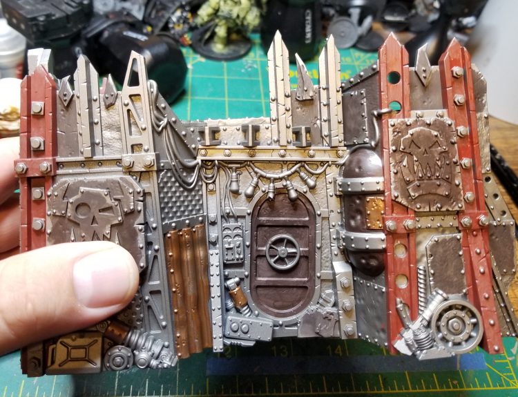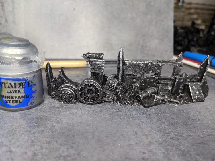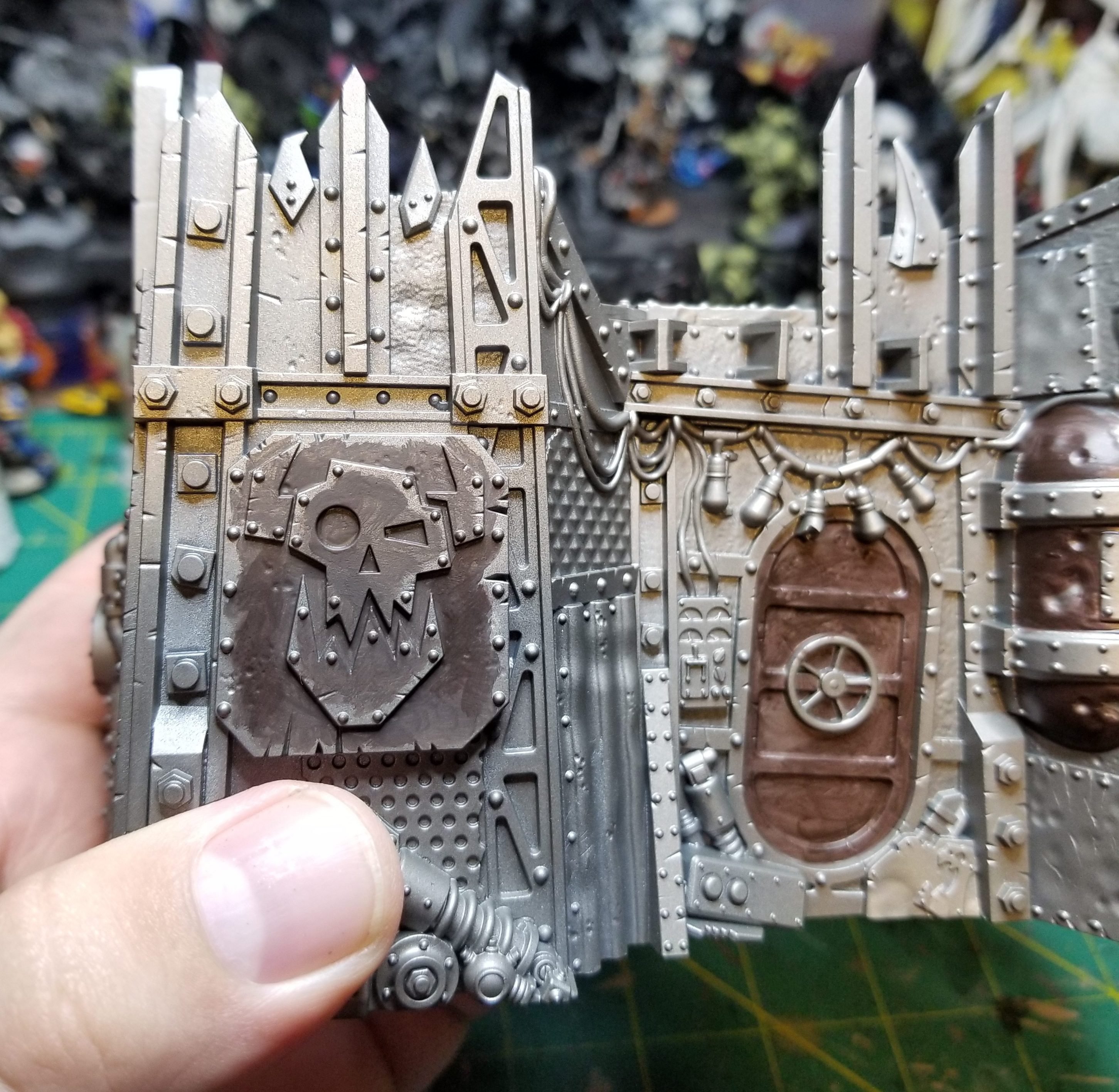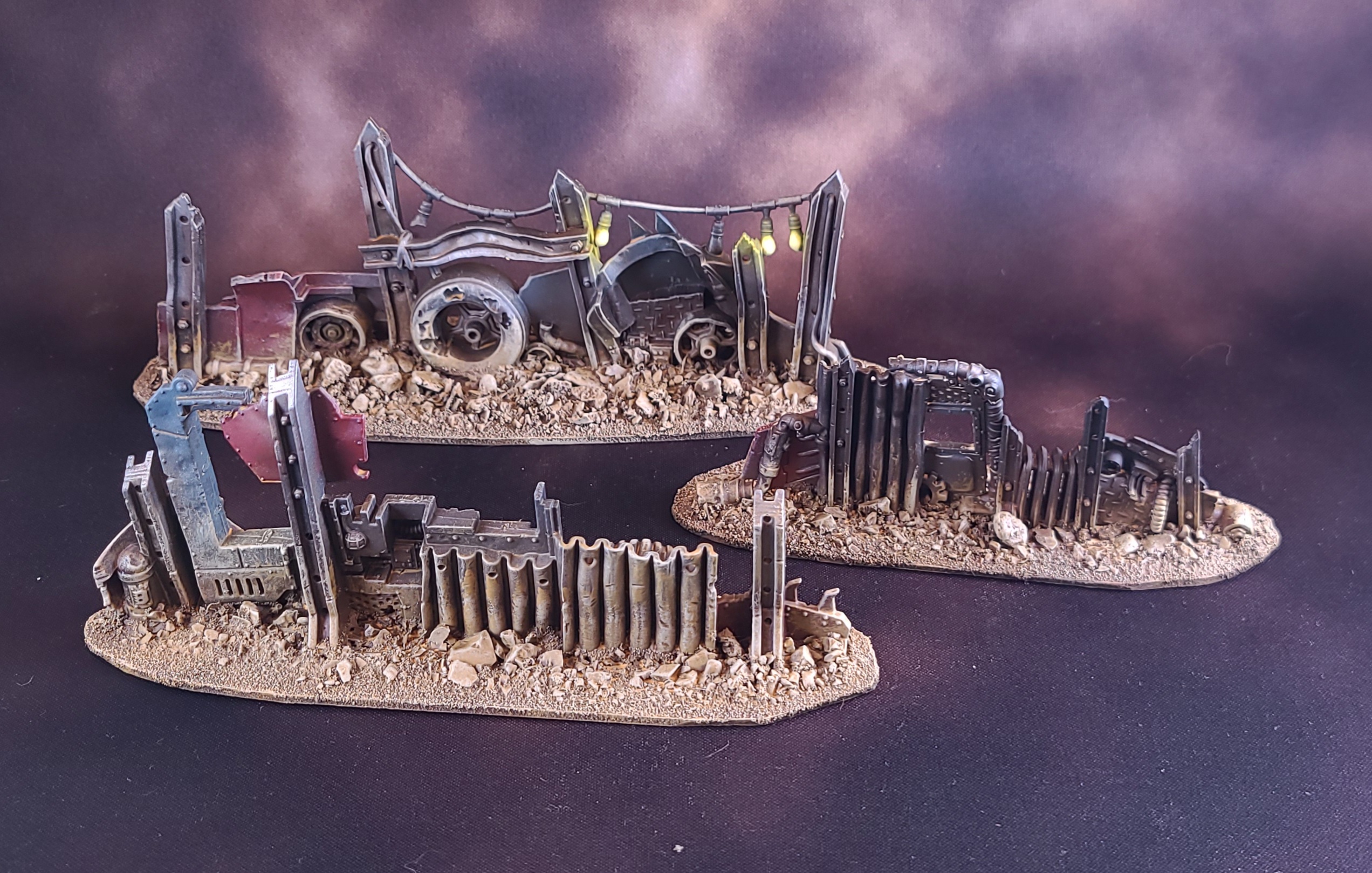 Beanith's Ork Barricades - Dry Brushed Runefang SteelDry brushing again with a brighter metallic, Runefang Steel in my case, focusing on hitting the edges of everything.