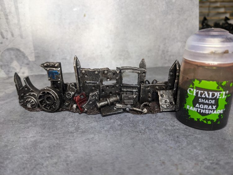 Beanith's Ork Barricades - Agrax Earthshade SmooshedAnd finally I've hit the entire thing with Talent in a bottle Agrax Earthshade to make it look even dirtier and worn. Bish Bosh Bash, done son.