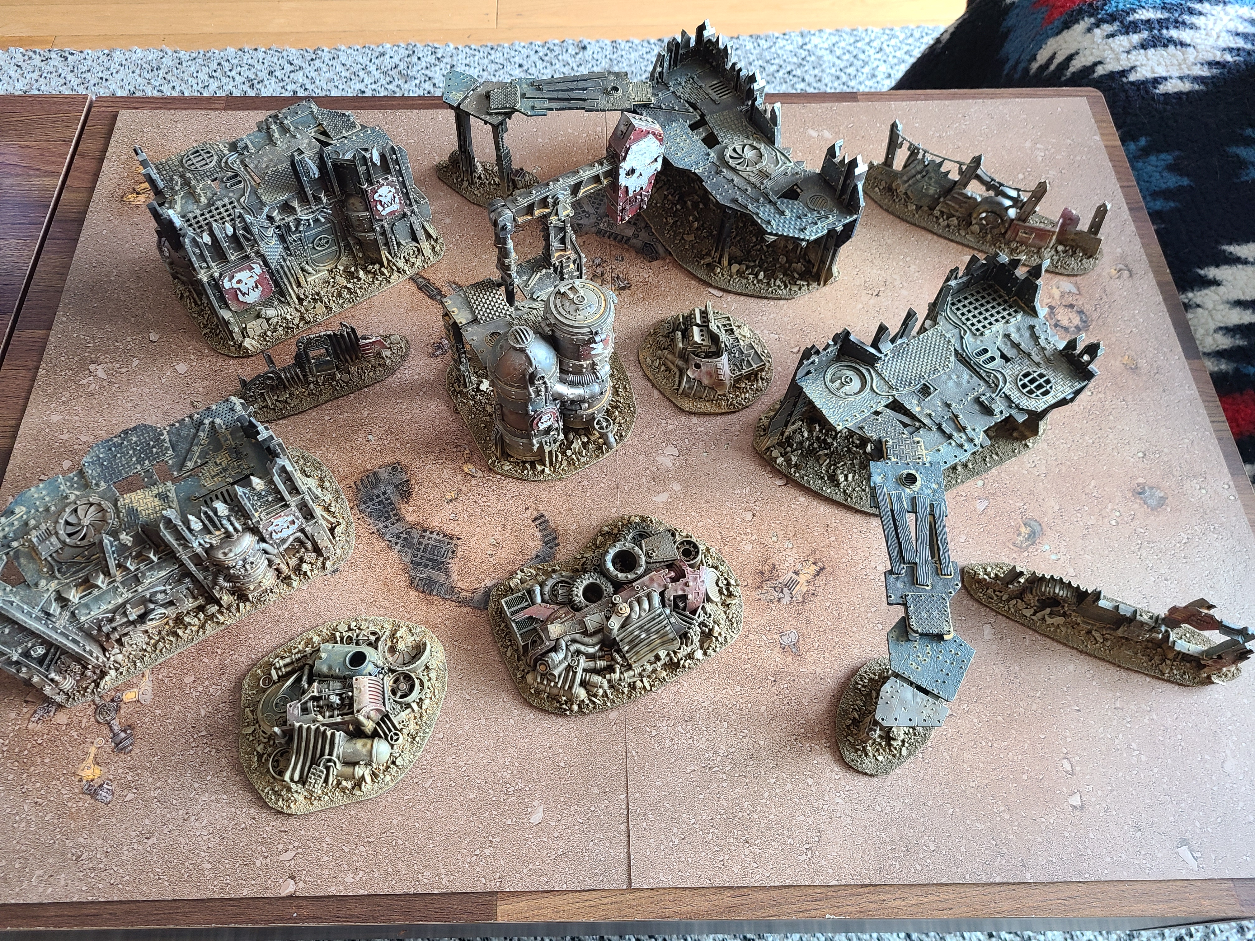 Historically, my approach to ork scenery is generally MAXIMUM SPEED with just enough tonal variation to not look turbo lazy. These shanties were lovingly bodged together about a decade ago and are still seeing regular service on the table; With the release of the new Kill Team box it seems like maybe the time has finally come for the shanty hamlet to expand to a shanty village. Hell yeah.
