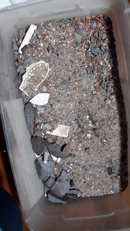 - All terrain pieces were given a wash of pigment powder mixed with water. I used a ratio of approx. 3 parts pigment to 1 part of water.