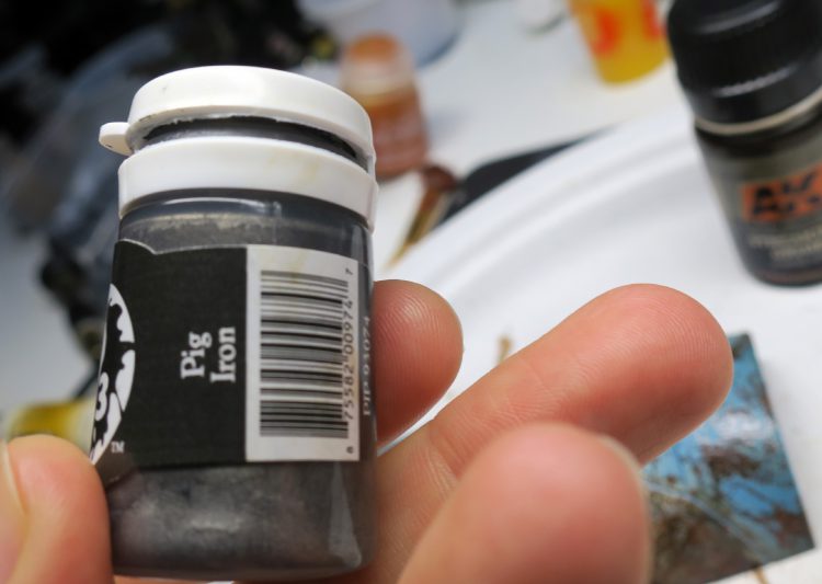 Depending on the placement of the armor plate on the model, I’ll apply a bit of weathering powder as a final step. I use secret weapon powders for this, and match the powder to the effect I’m looking for. (dark earth for dusty ground, black soot for exhaust/guns).