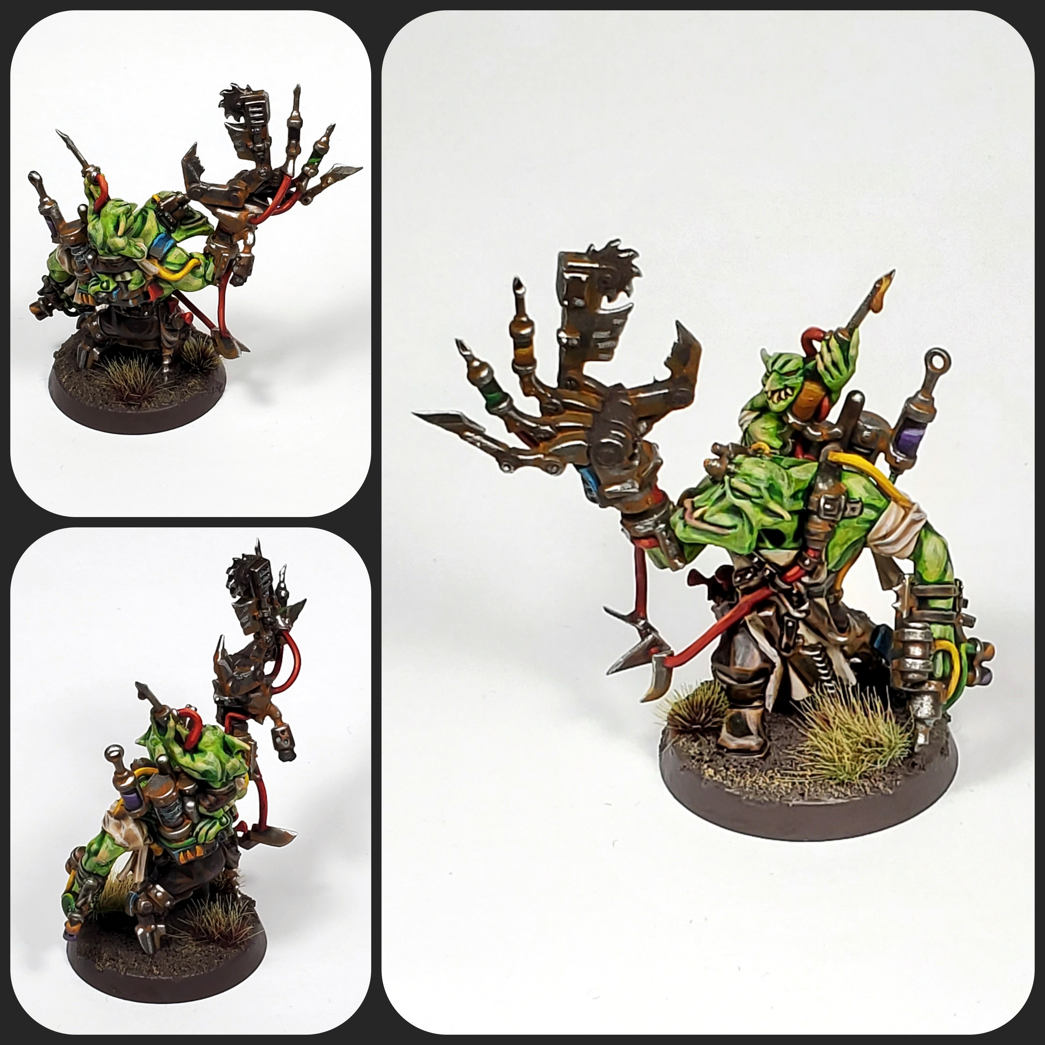 With the pandemic arriving and the preview of Saga of the Beast, I went looking under my bed to see if I had any ork kits to work on. Unfortunately previous me did not form a backlog beyond a painboy. Which was a bit disappointing but hey, I did not have any painboys otherwise and it means I have no backlog for one of my armies! This is going to be based on my second round of painting orks that simplified the scheme a bit, which given how many paints remain is saying something! Rather than step through each colour, I am mostly going to leave that to the pictures and describe ambiguity instead.