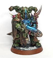 A while back I did a step by step on doing a blue plasma gun glow on a Death Guard Plague Marine, find the article here. It looks like this: