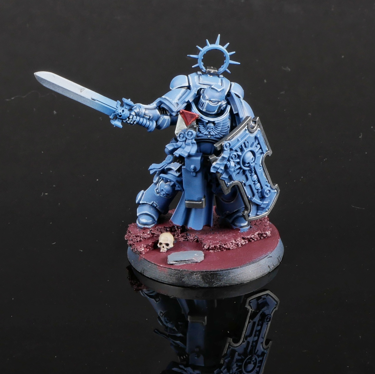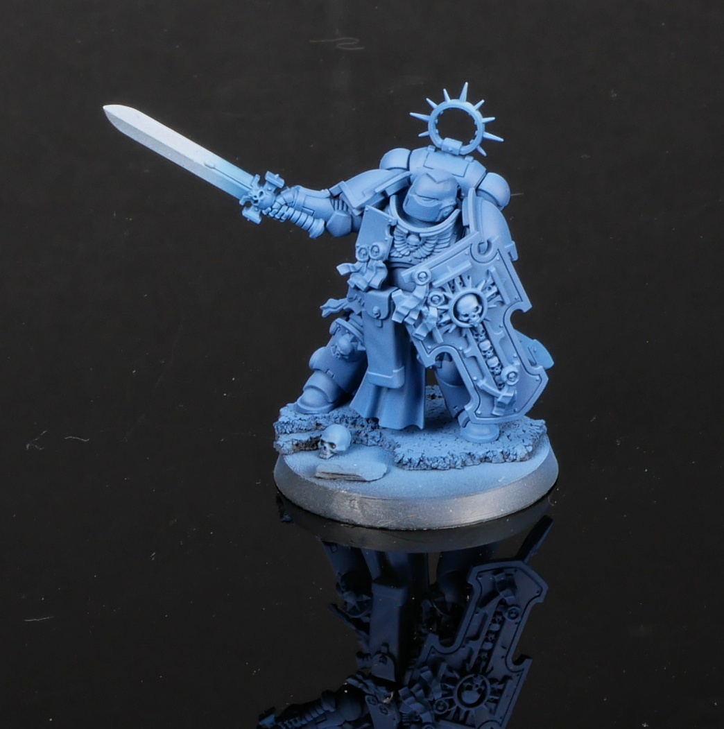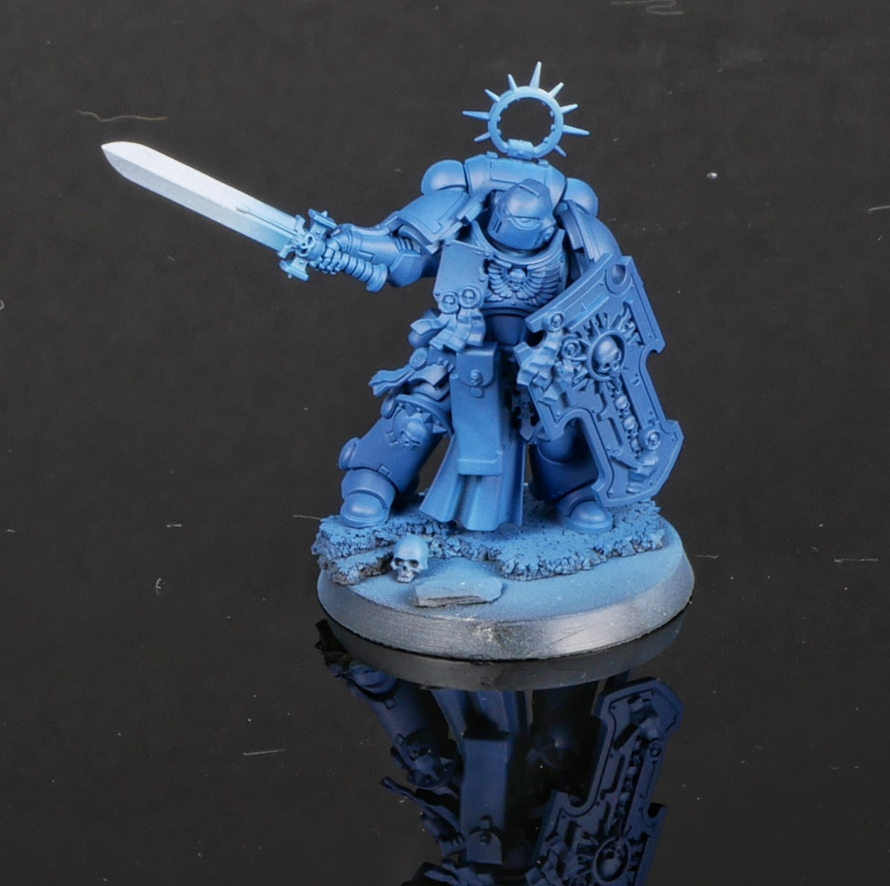 This then gets a zenithal coat of Calgar Blue, sticking mostly to the upper surfaces: