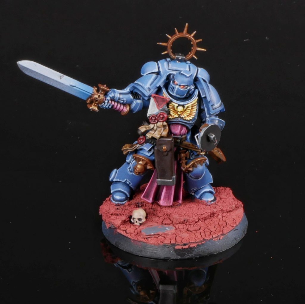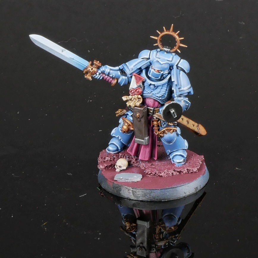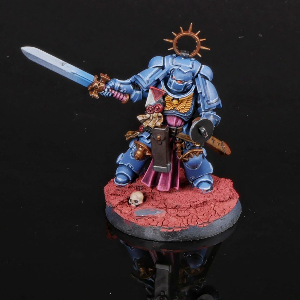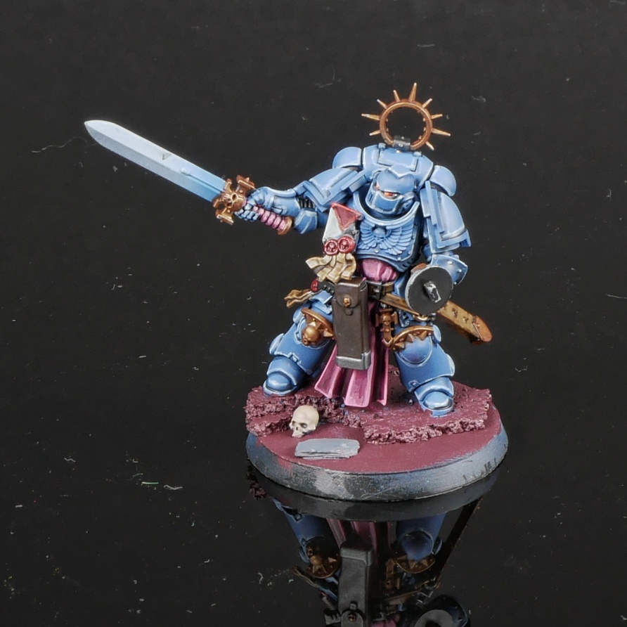 This then gets a zenithal coat of Calgar Blue, sticking mostly to the upper surfaces: