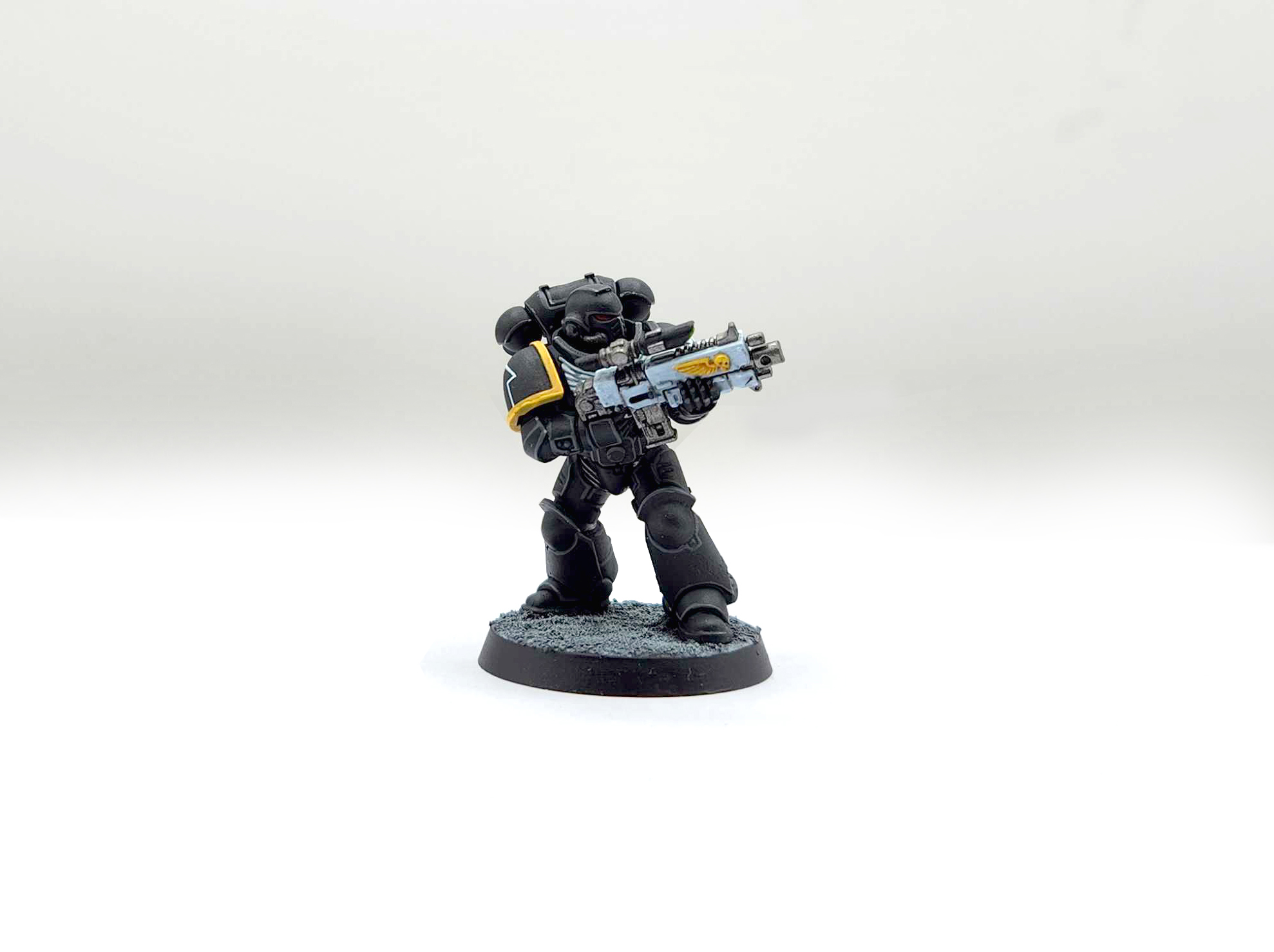 Raven Guard are one of the three main Space Marine chapters which are essentially wearing all black armor (the other two being Iron Hands and Deathwatch). So when painting Raven Guard, the real things you have to consider are going to be:- How are you going to paint (and properly shade and highlight) the black armor?