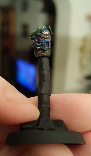 For the head, I followed the 'Eavy Metal masterclass on painting faces in the October 2016 White Dwarf. The larger head gave me a bigger canvas to work on, and it only seemed fitting to lavish some extra detail on the head honcho of the Ultramarines.