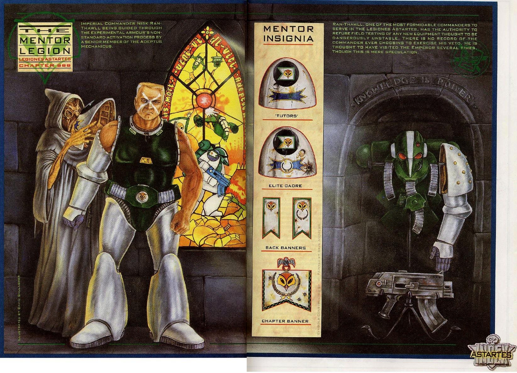 There are few Space Marine chapters I associate more with Rogue Trader than the Mentor Legion. As the recipients of the second ever Index Astartes article, they were one of the earliest chapters to get their heraldry and background written up. While the specifics have changed (as has just about everything about 40k since the 80s) the Mentor Legion gimmick has largely remained the same. Even as recently as the excellent Spear of the Emperor, they're a chapter characterized by advanced technology who regularly attach themselves to other Imperial fighting forces.