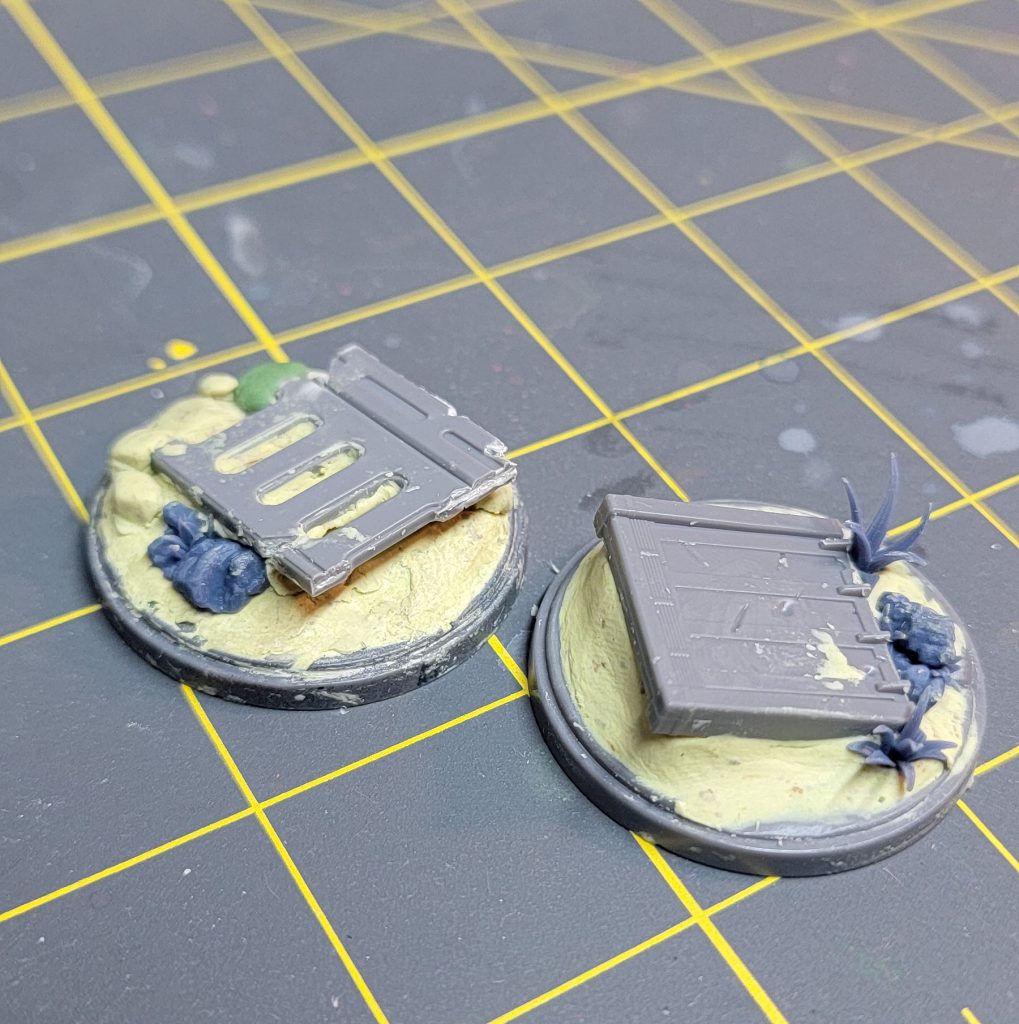 I’m using the standard Shatterpoint bases, but I’m adding bits to help each model feel unique on the table. All of my Shatterpoint bases use bits of rocks, plants, and debris. For Boss and Fixer, I wanted to add something extra to the battlefield. Note that I am painting my models and my bases separately. You can attach the models to your base using a small dot of super glue for the painting process. When you’re ready for basing, use a sharp hobby knife and carefully remove the model from the base.Using leftover bits from the Corebox terrain, I cut up a piece of gantry and a wall to act as debris. I help create the look of being a part of the battlefield but using Milliput to form around the debris. For sev and scorch, I’m leaving the deck plating untouched, but adding some rocks and using Milliput to fill the gap between the stock base and the added features.