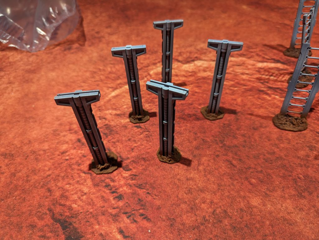 I kept the bridge supports detachable for flexibility. The bridges don't need them to support a model's weight, but I included them in case anyone wanted to use them as cover: