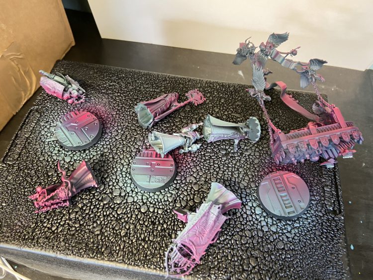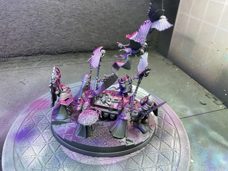You can see here how some of the purple and pink has spilled across the model. That's great, it's the main reason I use an airbrush as you can imagine the airbrush is the light source and it will find all of the bits it should illuminate.