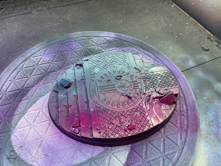 Next, I mix up the Deep Sea Blue with some white and use it to create a zenithal highlight from the right side. This means that the raised edges will get lit by the brighter moonlight but the recesses will still be dark.