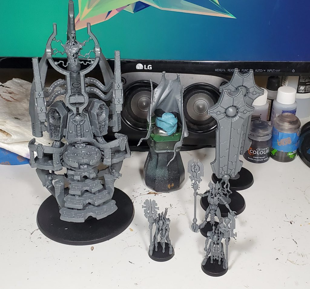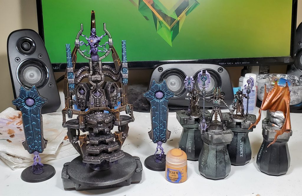 I am not going to be going into quite as much detail as some of my HTPE articles because my colour scheme has already been covered in the articles for Szeras and Necrons in general. Instead I am mostly going to be covering unique stuff, particularly where I messed up while building the model, along with some general in progress shots.