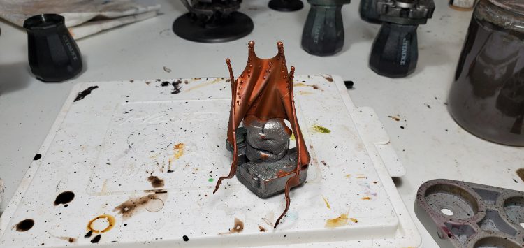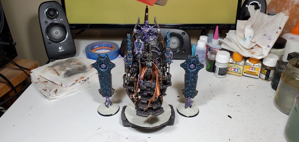 I personally built the dais as one piece because I have concerns about durability otherwise, that thing has a lot of spindly connections that I would want a solid plastic cement join on. The triarch along with the cloak each being on their own bases worked pretty well, they are individually quite simple models so I would probably not separate them any further. Now on to where I screwed up, I am sure the astute among you will have already noticed.