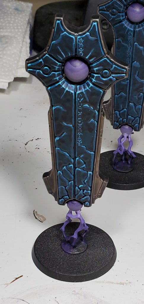 After washing those colours with wyldwood, terradon, coelia and basilicanum respectively I then base coated the purple with naggaroth, I usually do this to prevent any of the washes potentially getting on the purple and tinting it.