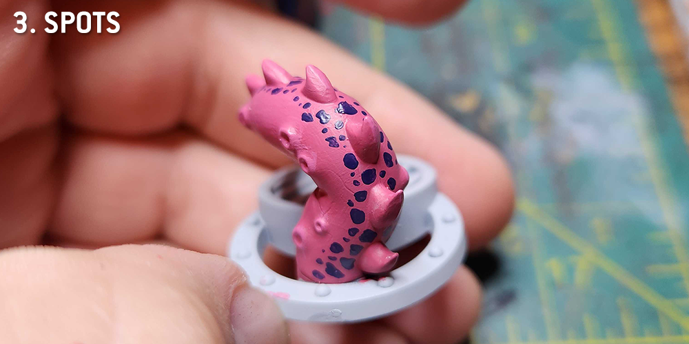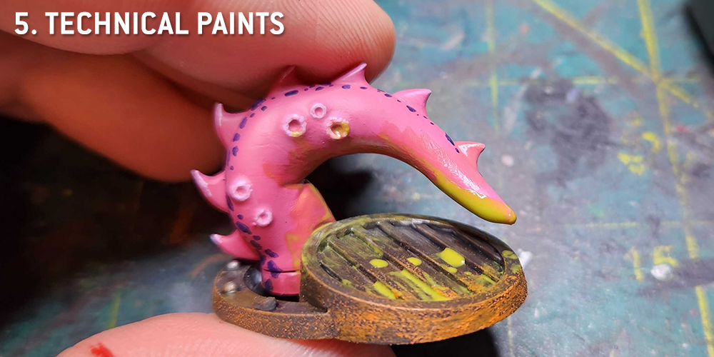 For the first problem, think about the angles the tentacle will be viewed from and work to highlight the raised parts of those angles. For the second, just go back to your initial thought of what color you wanted the tentacle to be, I wanted a purple tentacle so I highlighted purple. Specifically I used some of Citadel's