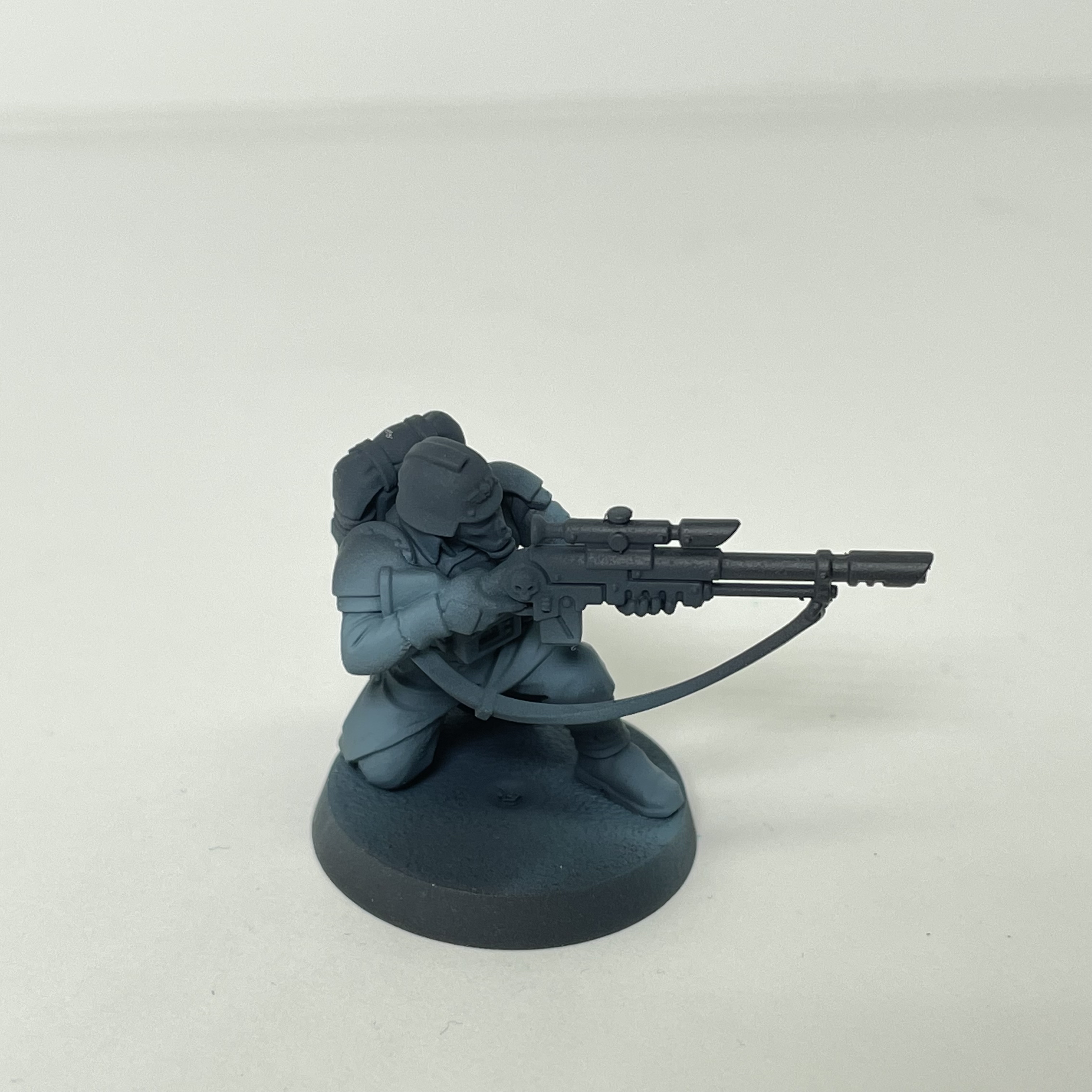 Prime the model with Abaddon Black or (preferably) Mechanicus Grey spray paint.