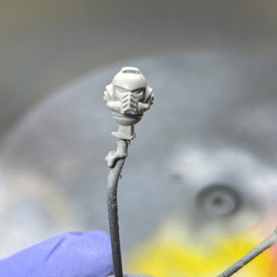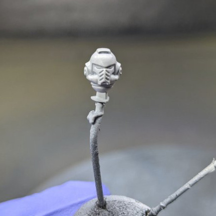 - Jump over to the head and basecoat with Vallejo Model Air White Grey.