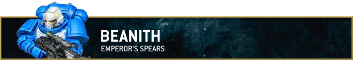 Created during the 25th Founding, the Emperor's Spears make their home on the ocean world of Nemeton, and were one of three chapters - along with the Celestial Lions and the Star Scorpions - sent to defend the region of the galaxy known as Elara's Veil. Although an Ultramarines successor chapter the Spears share very little in common with their parent chapter, with a highly triablistic culture and an emphasis on melee combat and drop strikes.