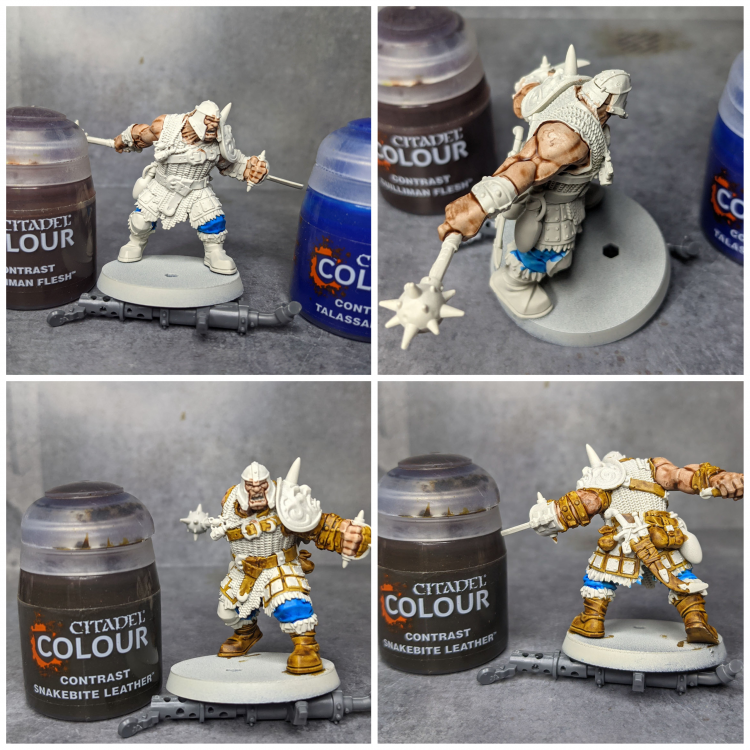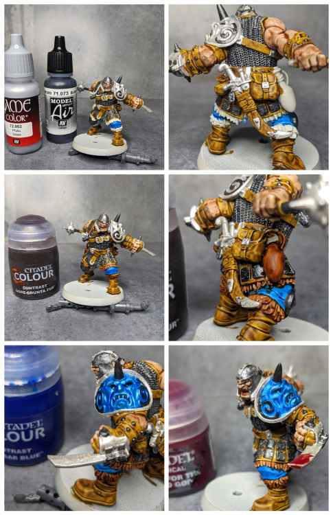 Brutogg Corpse-Eater - Credit BeanithI started off with Contrast Talassar Blue on the pants and Contrast Guilliman Flesh for the skin. I then moved onto Contrast Snakebite Leather for all of the leather bits