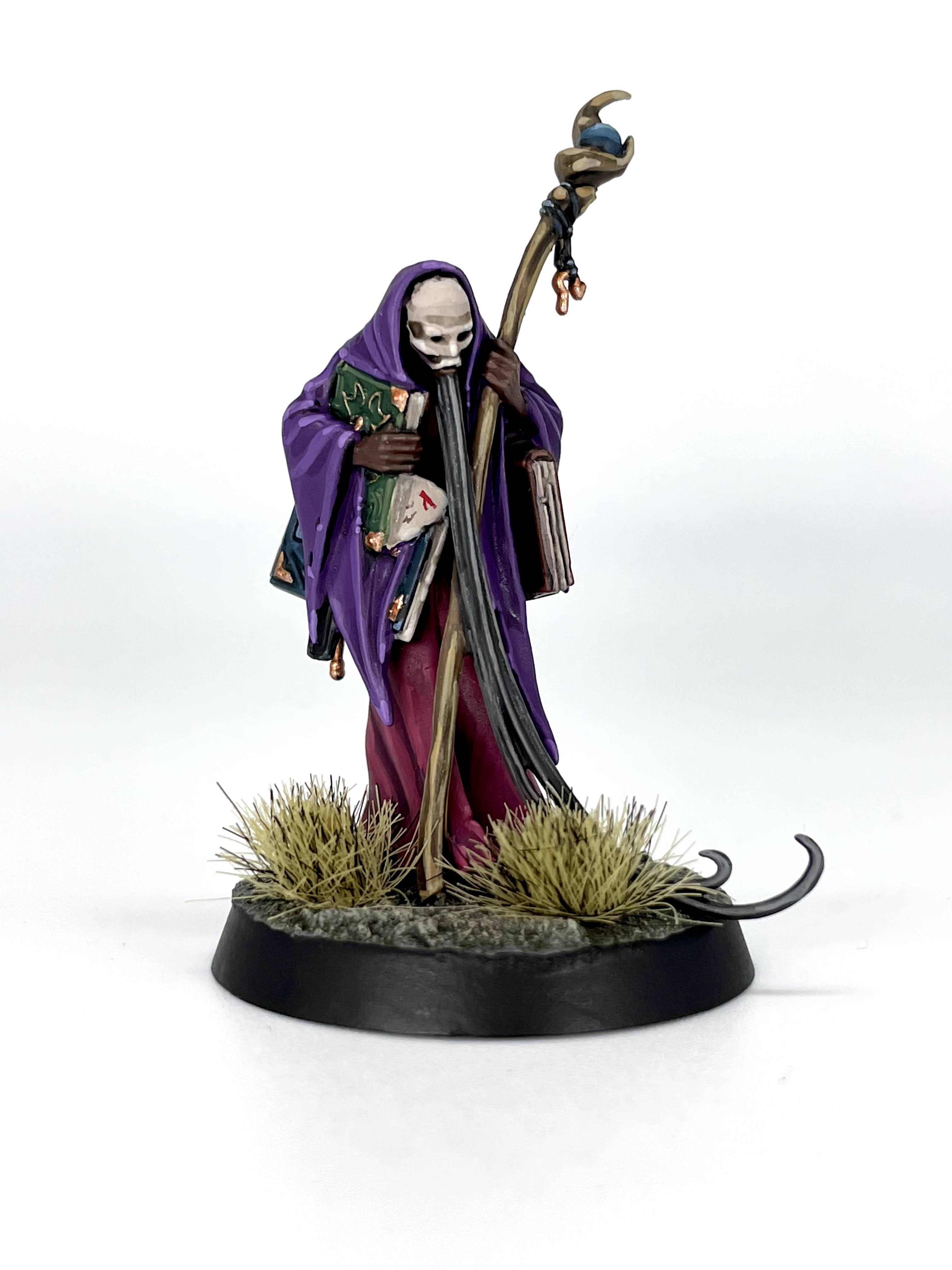 - Highlight the very ends of his robes and rim of his hood with Genestealer purple