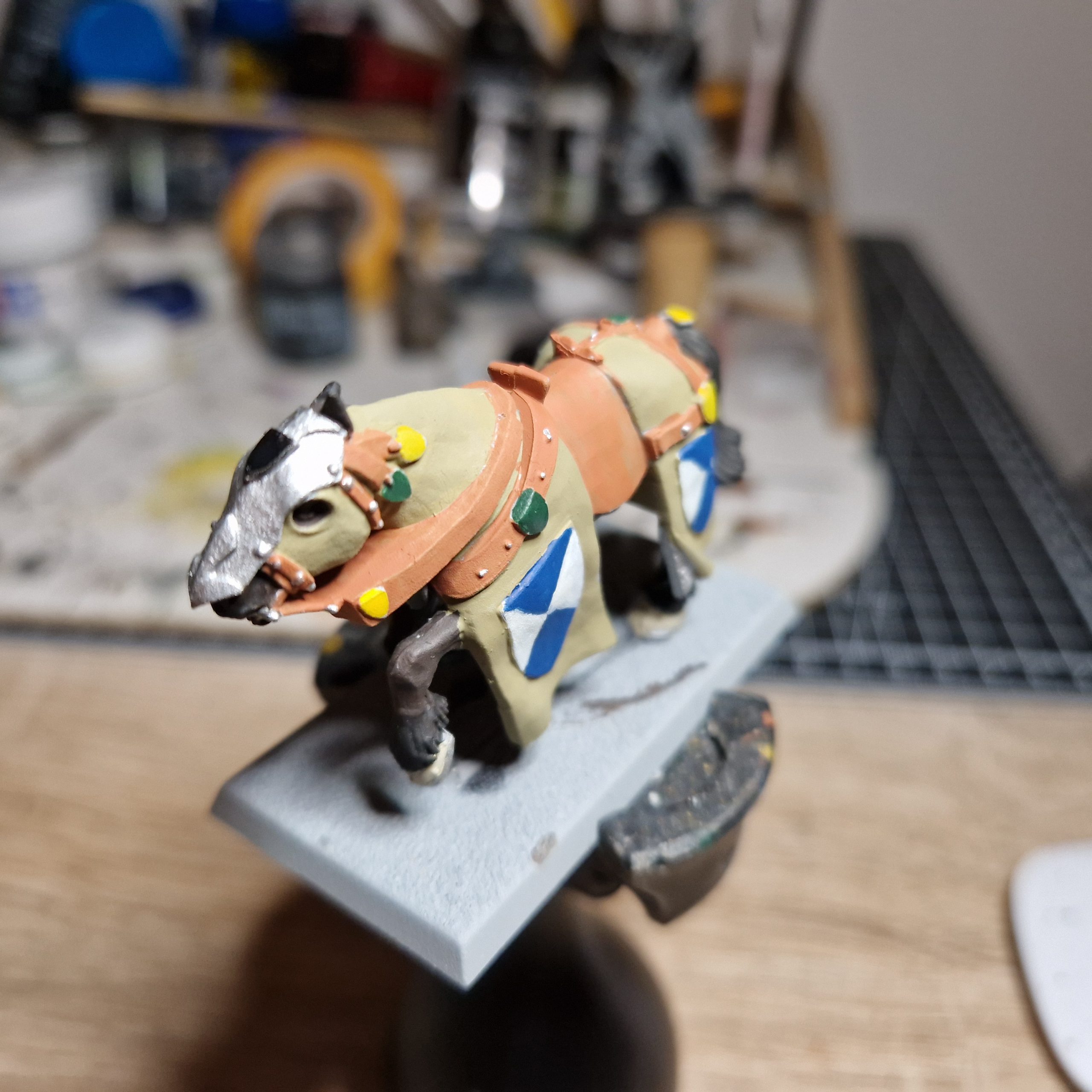 Decals and wet earth on. I shot a front shot because I messed up one of the decals on the barding's shield so I'm not going to show it to you lovely people.