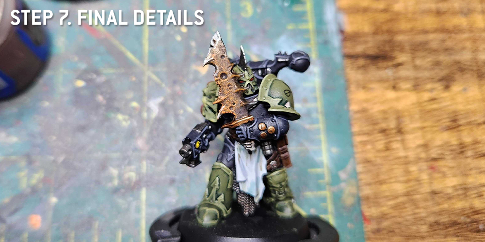 Painting the Purge has a lot in common with painting the Death Guard; while the warband have some notable differences and are considered to use the rules in Codex: Chaos Space Marines, they likely make use of a lot of the same plague weaponry and doing conversions with Death Guard bits to model the Purge is fun, easy, and flavorful.For more on painting the Death Guard, including notes on painting corroded weapons, rusty armor, and green slime, check out our article on How to Paint Death Guard.
