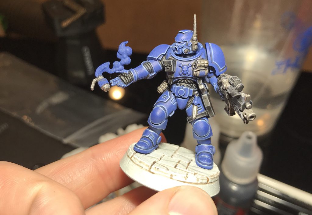 I started painting my Ultramarines back in 2014 (maybe?), and didn’t even use the now standard Games Workshop scheme until 2015. As any veteran painter can sympathize I view all models from this era as total trash that belongs in a dumpster. While this is overly critical of my previous work it is important for a painter to have a constant desire to improve. I feel the steps I will list are perhaps the maximum effort I am willing to expend when it comes to painting line troops and vehicles in my army, which is admittedly already very time intensive. There are further techniques such as air brush highlighting and blending that can take everything here once step further, so don’t hesitate to introduce them if you have that extra time to burn.